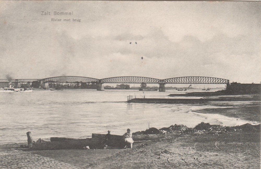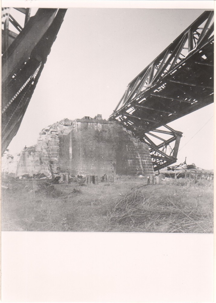 Vernielde bruggen bij Zaltbommel.