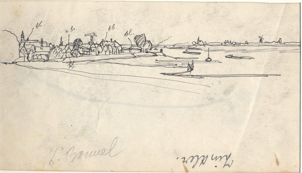 voorstudie gezicht vanaf de rivier de Waal op Zaltbo...