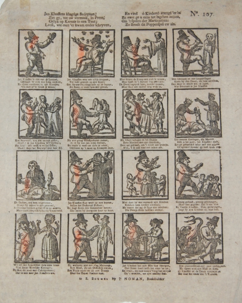 Centsprent met zestien prentjes in kleur over Jan Kl...