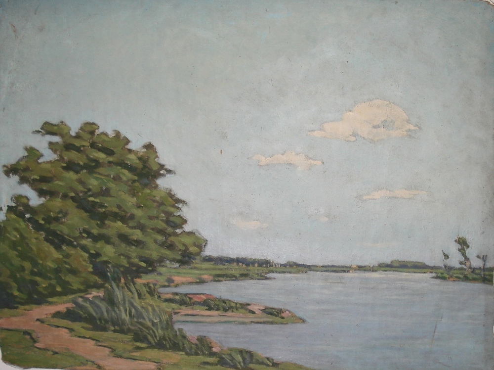 schilderij olieverf op doek "Uiterwaarden met rivier...
