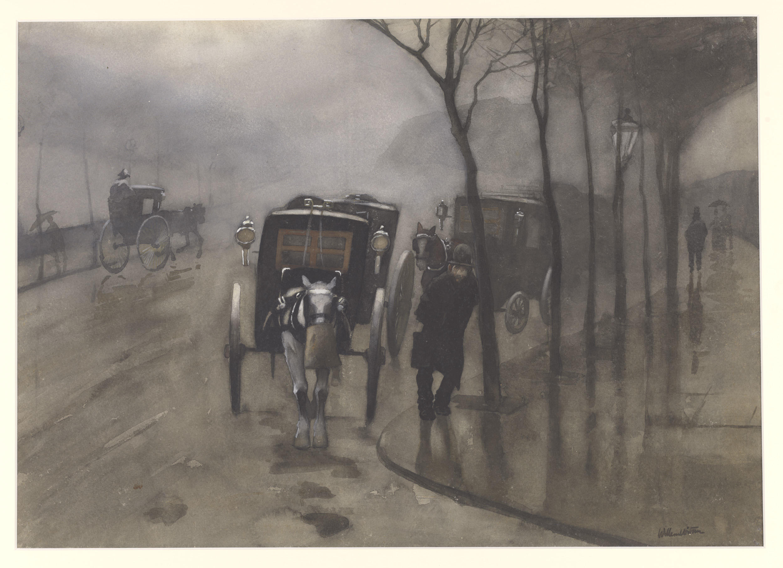 Wachtende rijtuigen, Victoria Embankment, Londen
