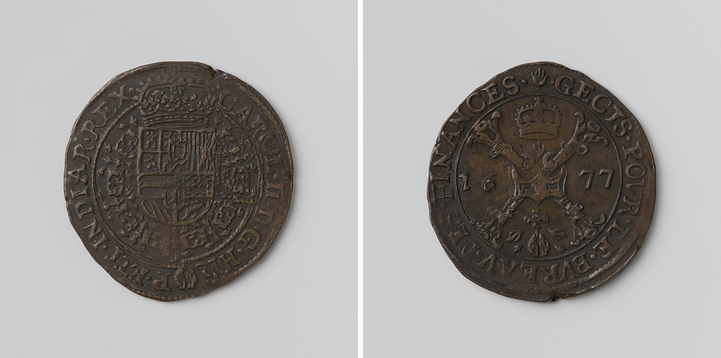 Karel II, koning van Spanje, rekenpenning geslagen o...