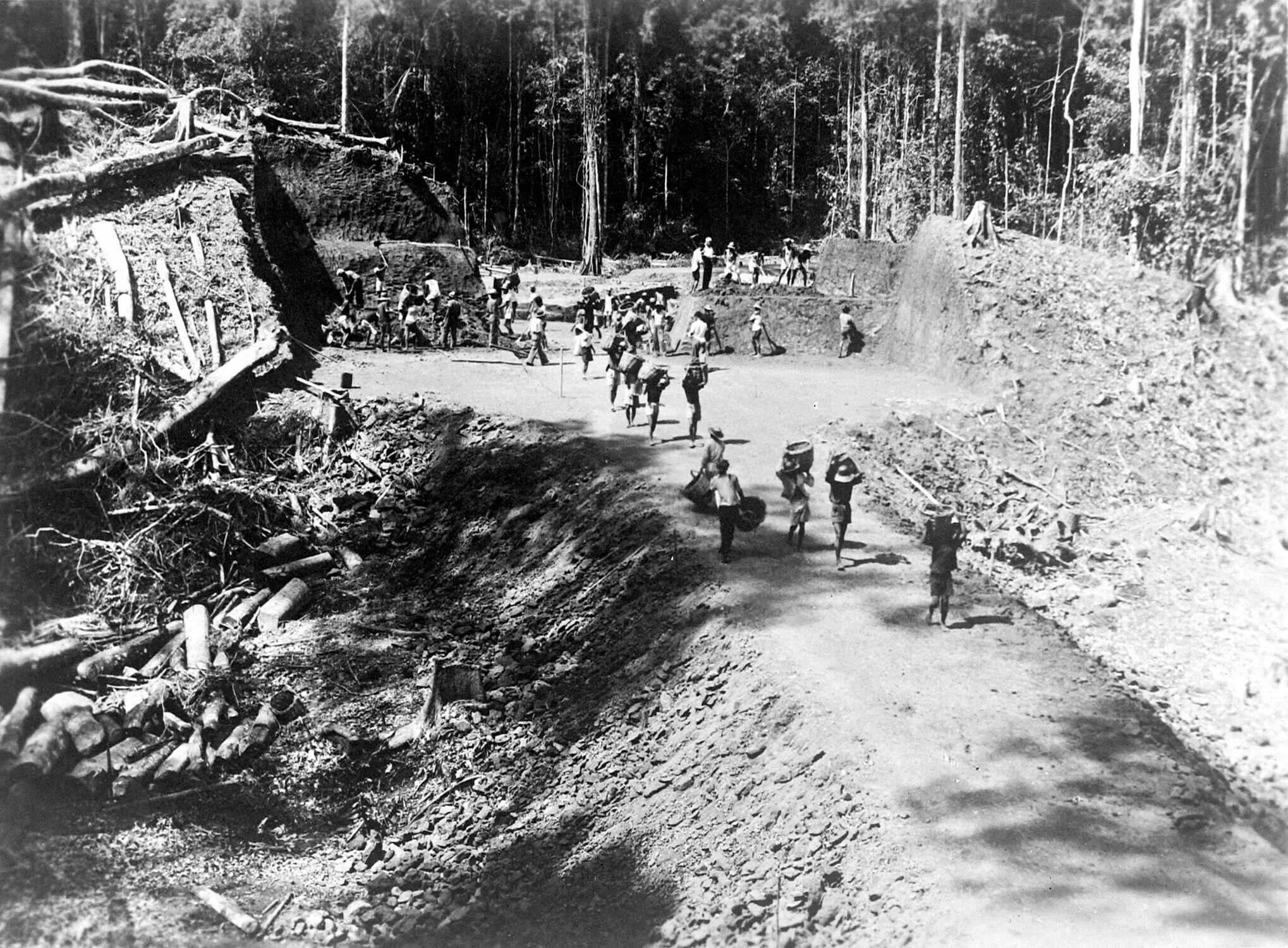Aanleg van een weg door de oliemaatschappij N.N.G.P.M.