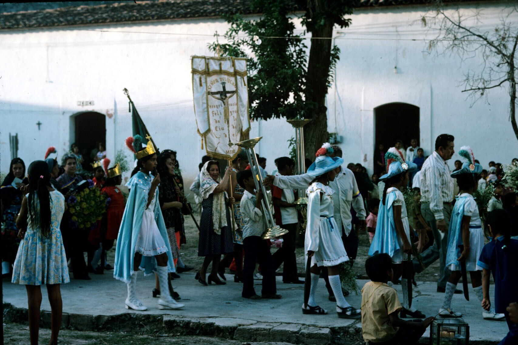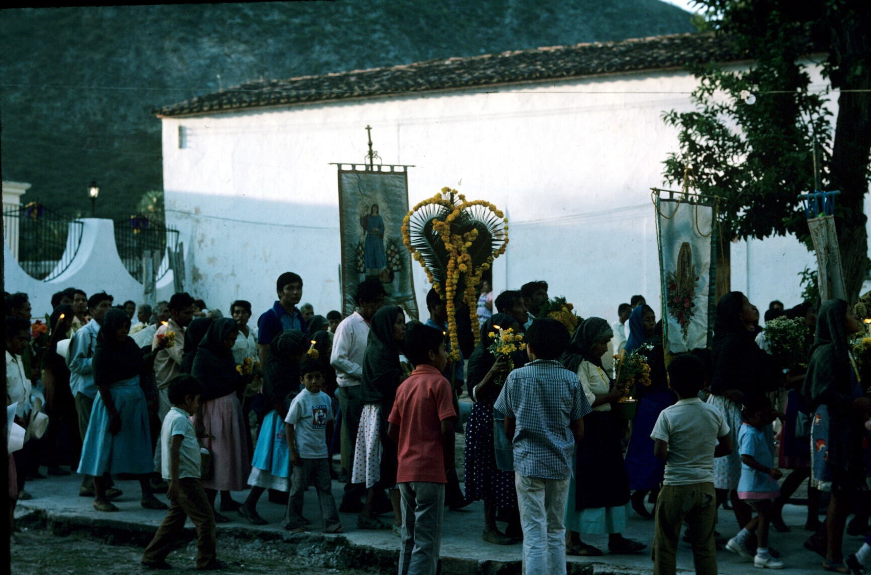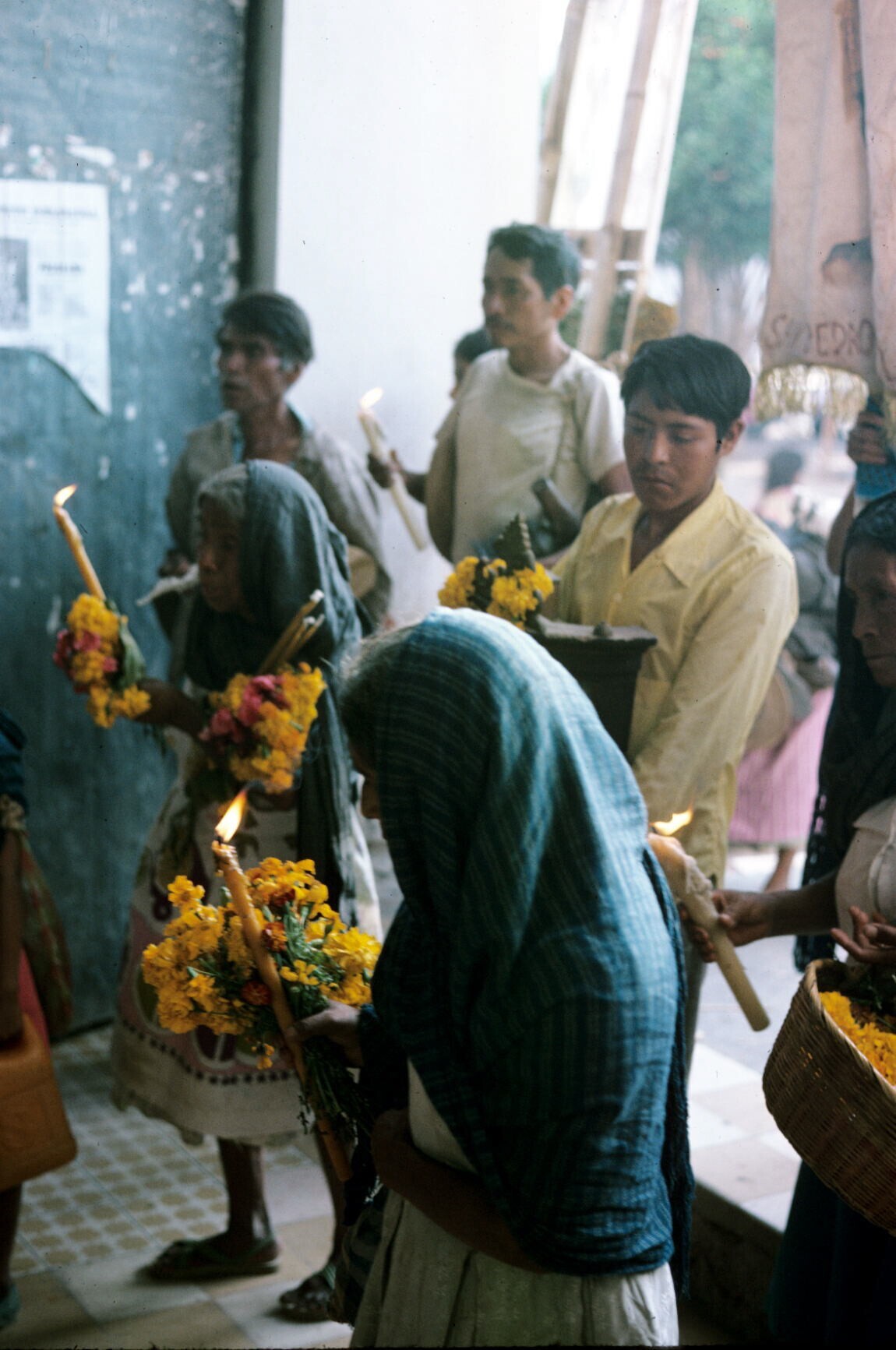pelgrims met kaarsen en bloemen (cempaxochitl)