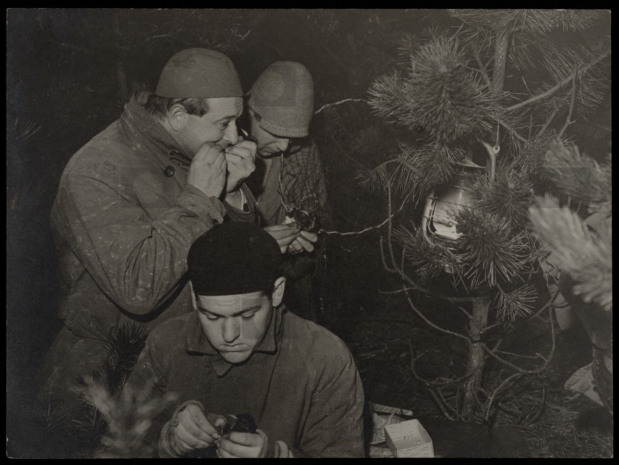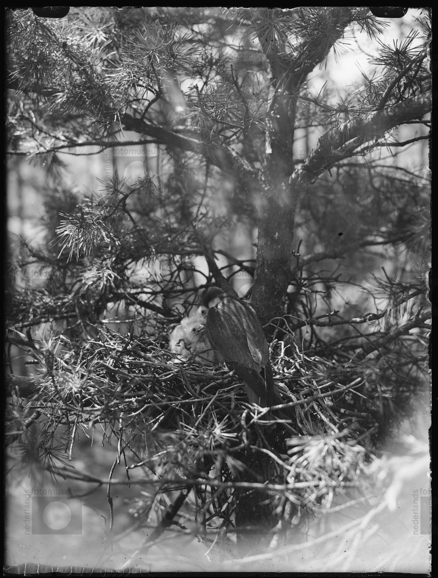 Vrouwtje Wielewaal bij jongen in nest, Egmond (1949)