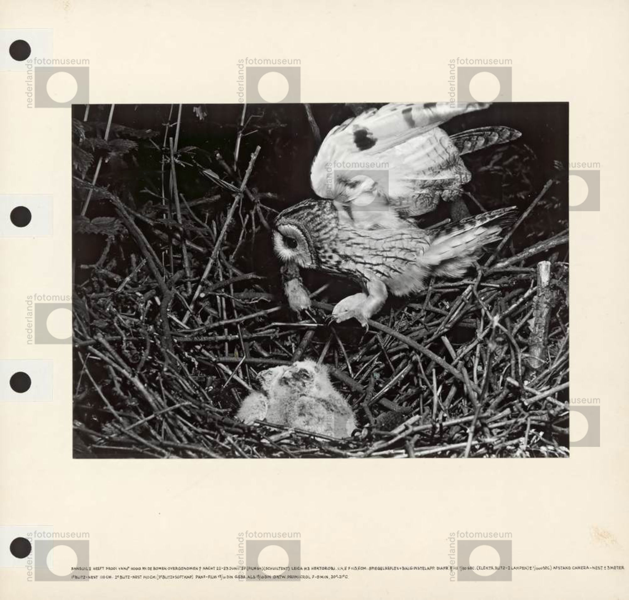 Vrouwtje Paap bij nest met jongen, Landgoed Het Woud...