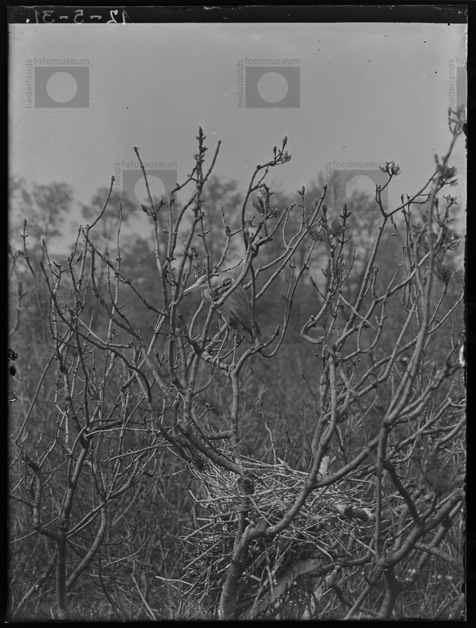 Blauwe reiger bij nest (1934-1935)