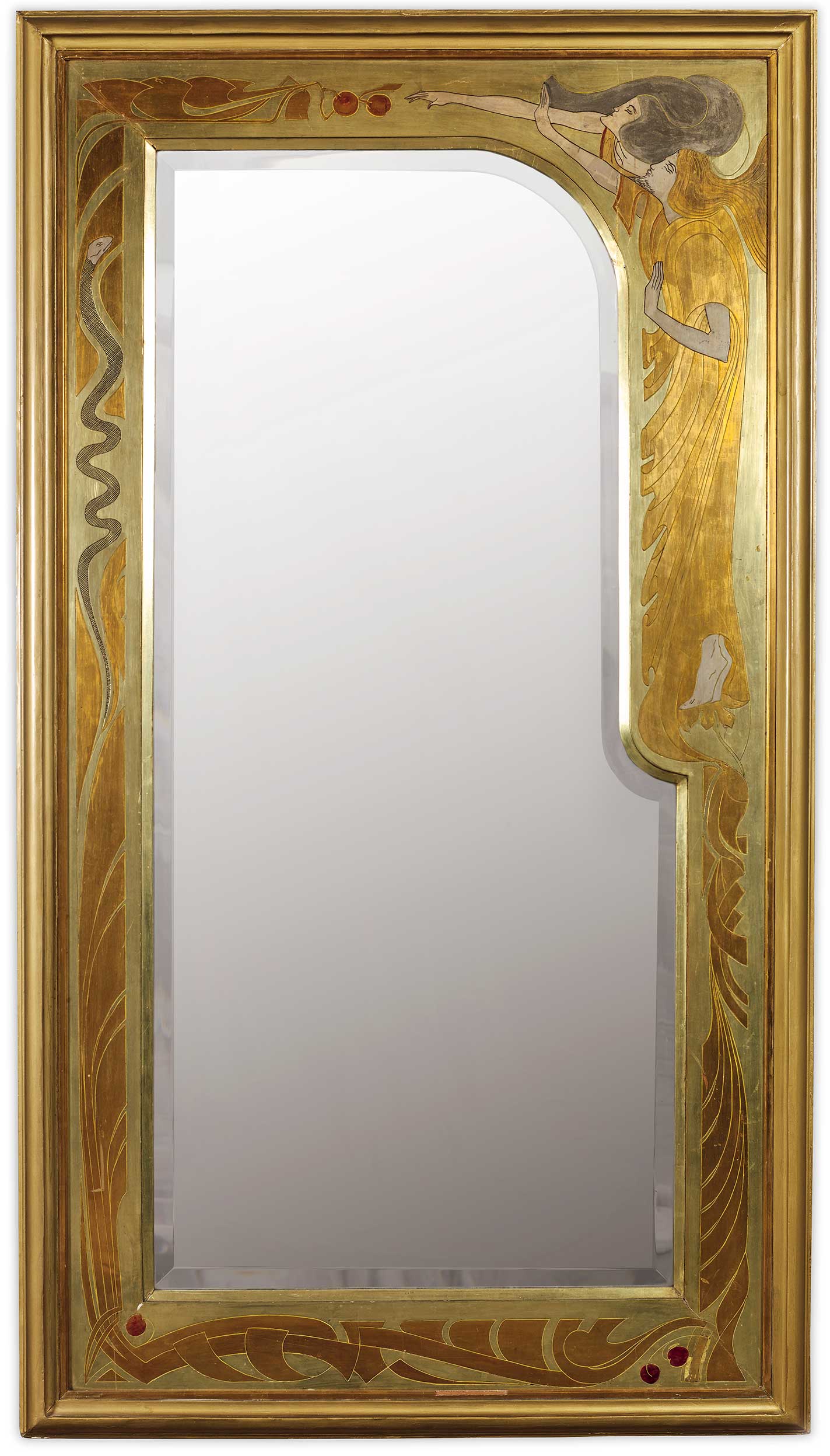Spiegel; lijst met voorstelling van Adam en Eva onde...