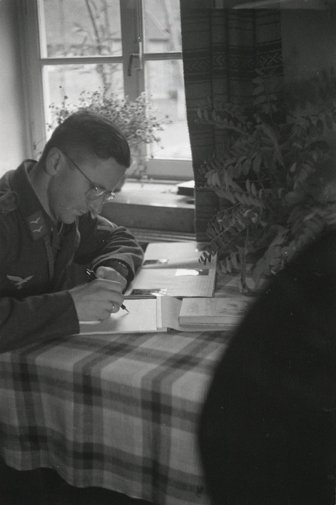 Een Luftwaffe Gefreiter aan het schrijven.