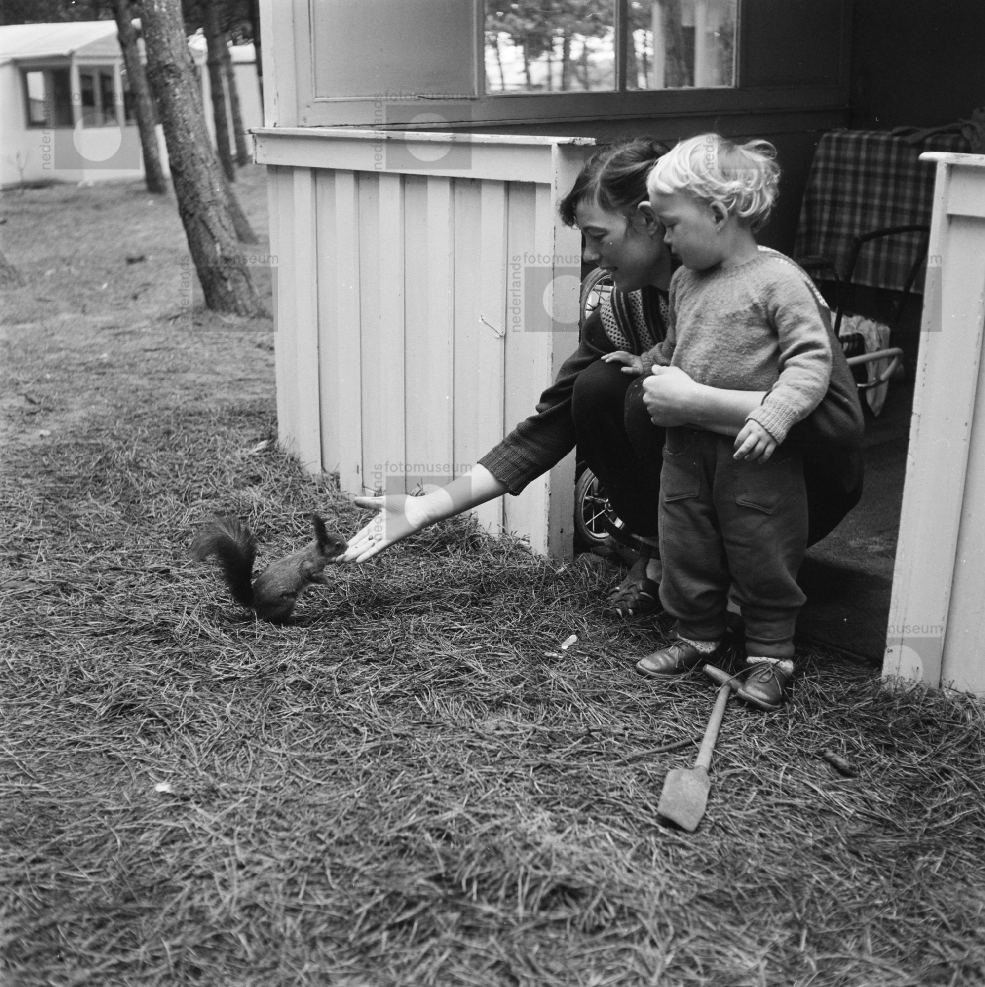 Bakkum, kampeerterrein. Eekhoorn Japie voeren.