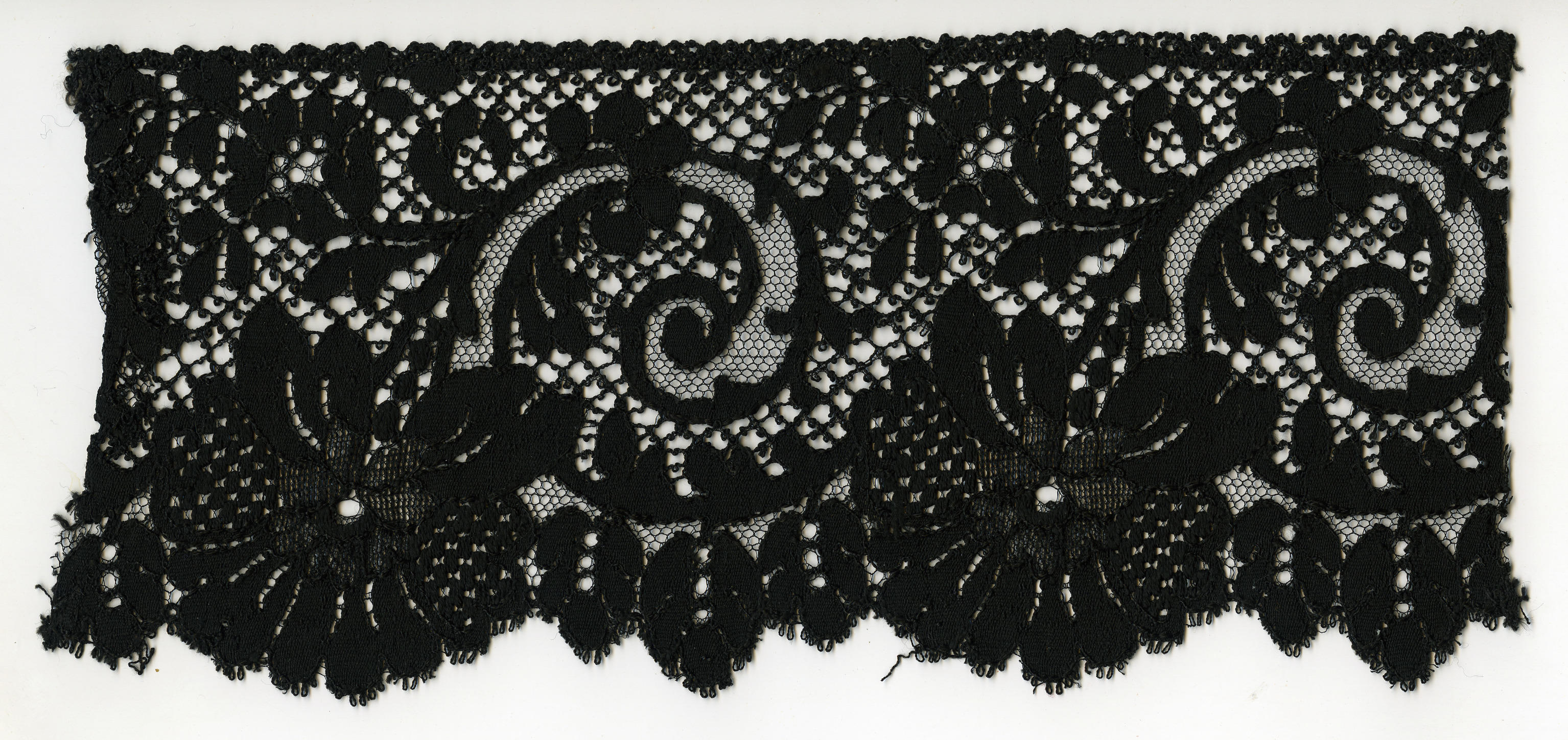 Strook machinaal geborduurde tule, Walcheren (staal ...