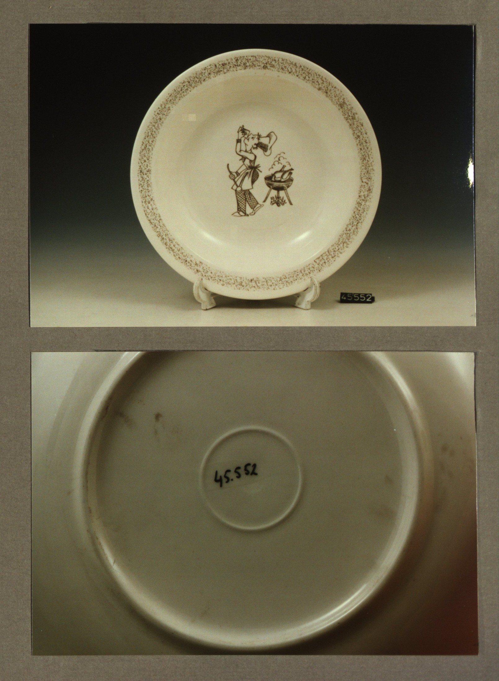 Schotel - plat, model Recamier met decor 8 mei 1954