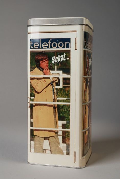 Veelkleurig rechthoekig blik in vorm van telefooncel...