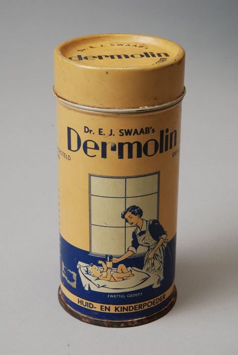 Klein cilindrisch blik met de afbeelding van moeder ...