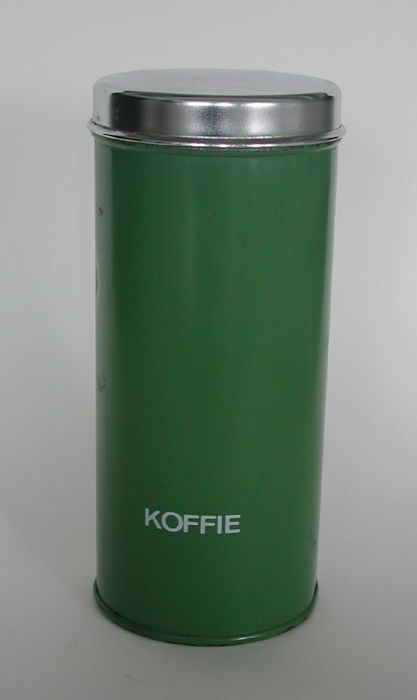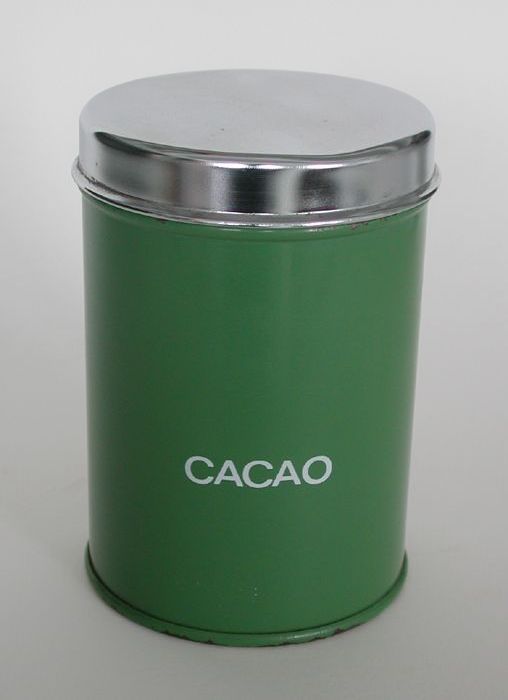Cilindrisch groen blik, met metaal-kleurige deksel, ...