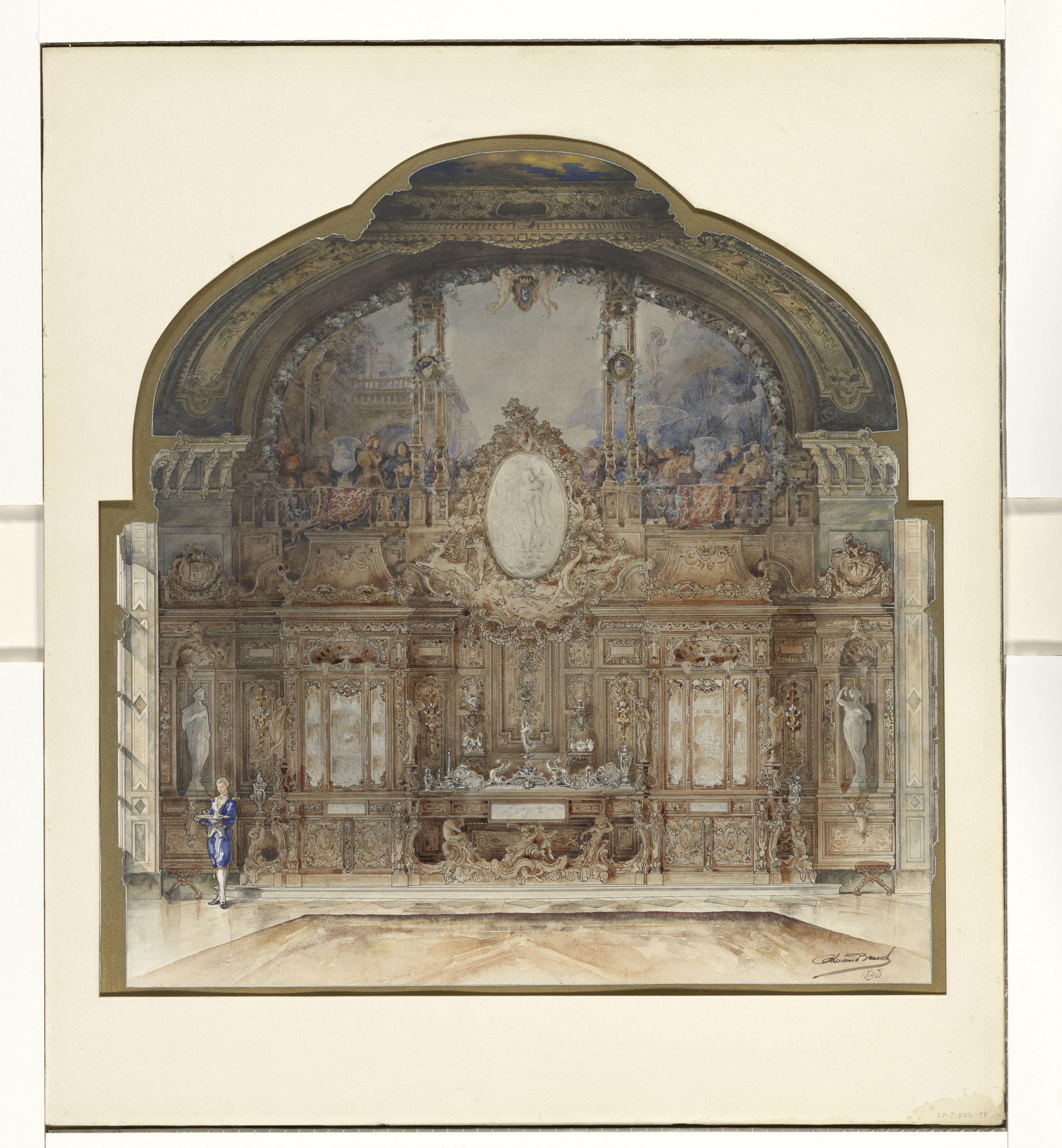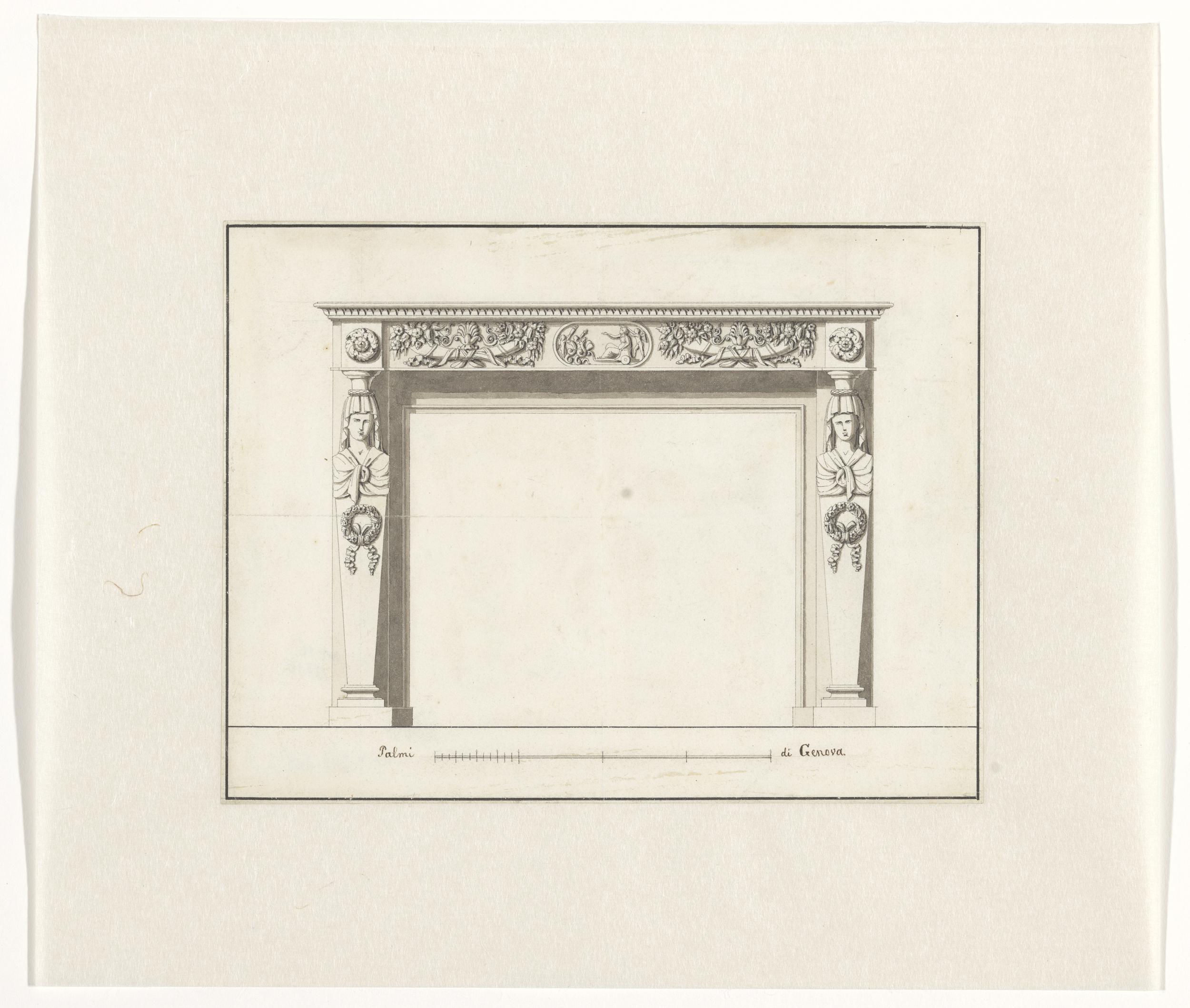 Ontwerp voor de gebeeldhouwde omlijsting van een sch...
