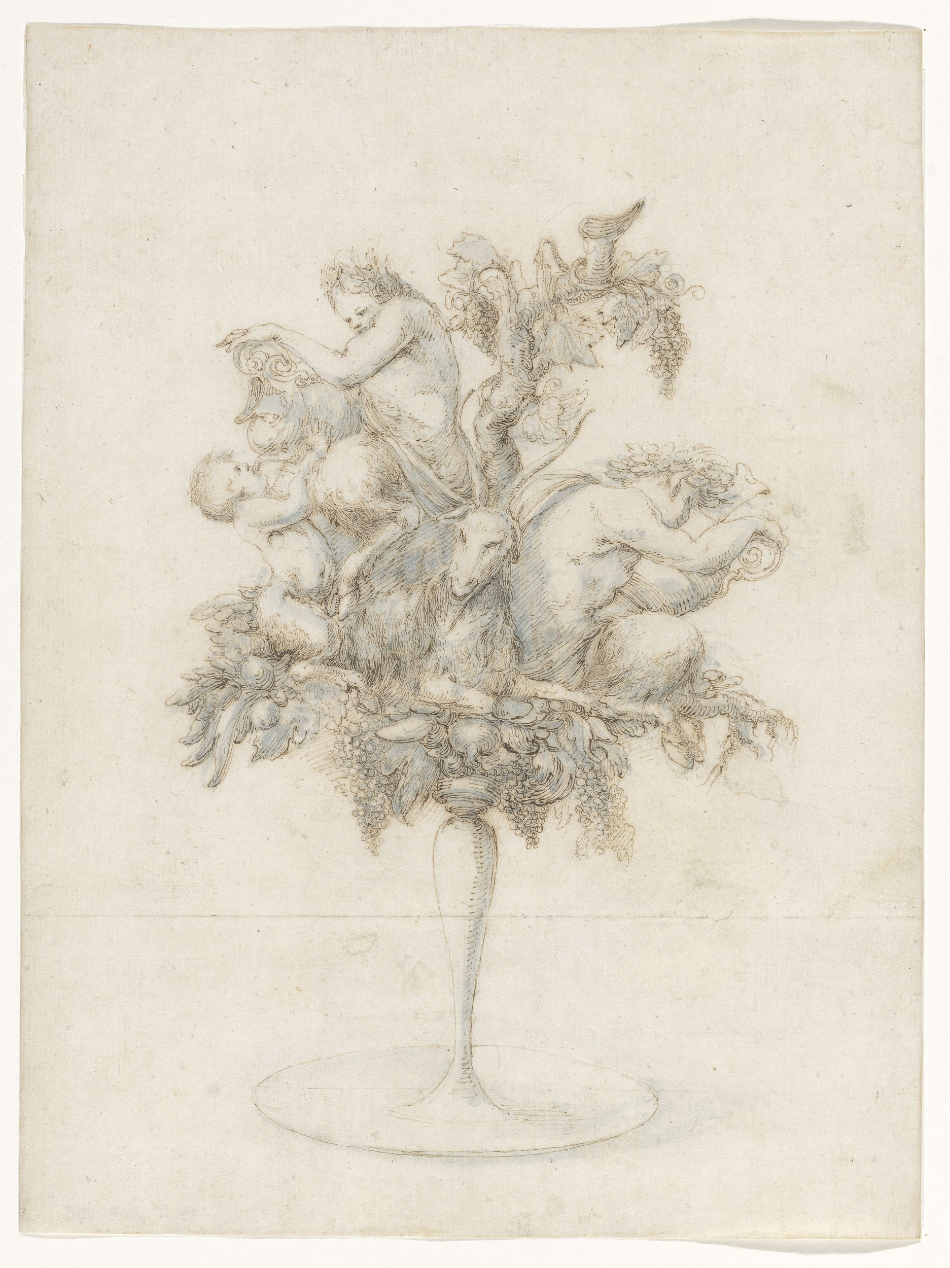 Ontwerp voor een fantasieglas met een satyrfamilie e...