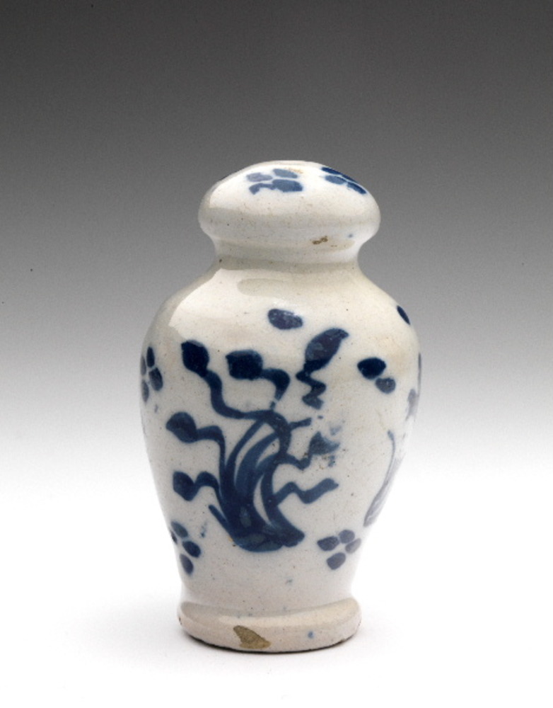 Scherf van keramiek, tinglazuur, gemaakt in Haarlem ...