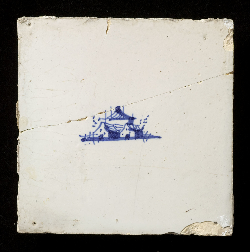 Tegel in tinglazuur, voorstellende schip, vervaardig...