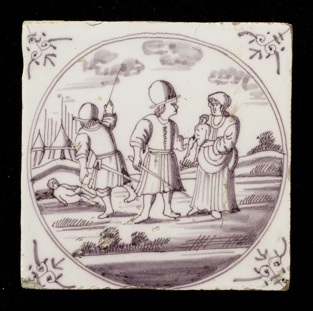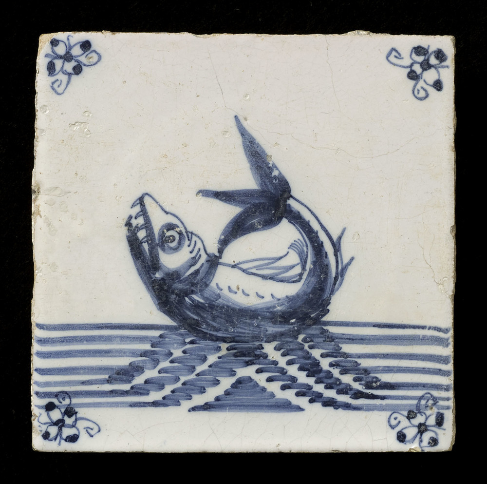 Tegel van keramiek, tinglazuur, voorstellende een vi...