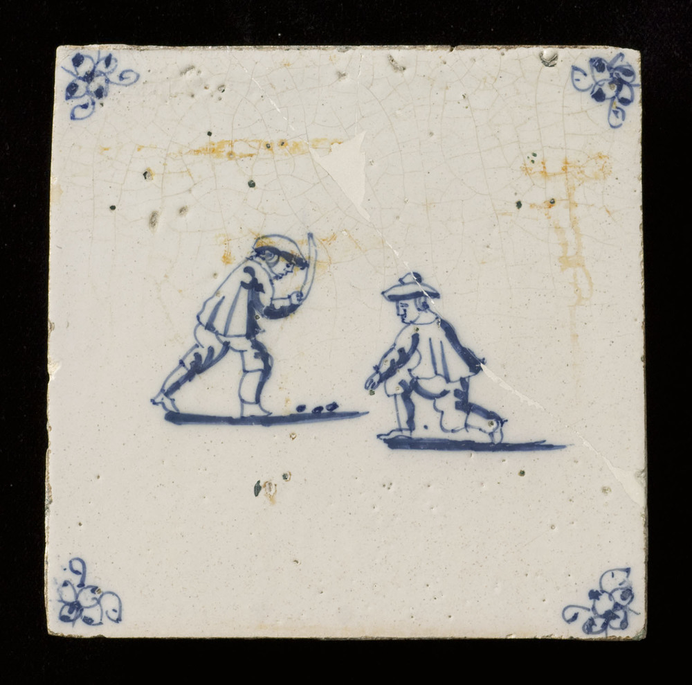 Tegel van keramiek, tinglazuur, voorstellende een sc...