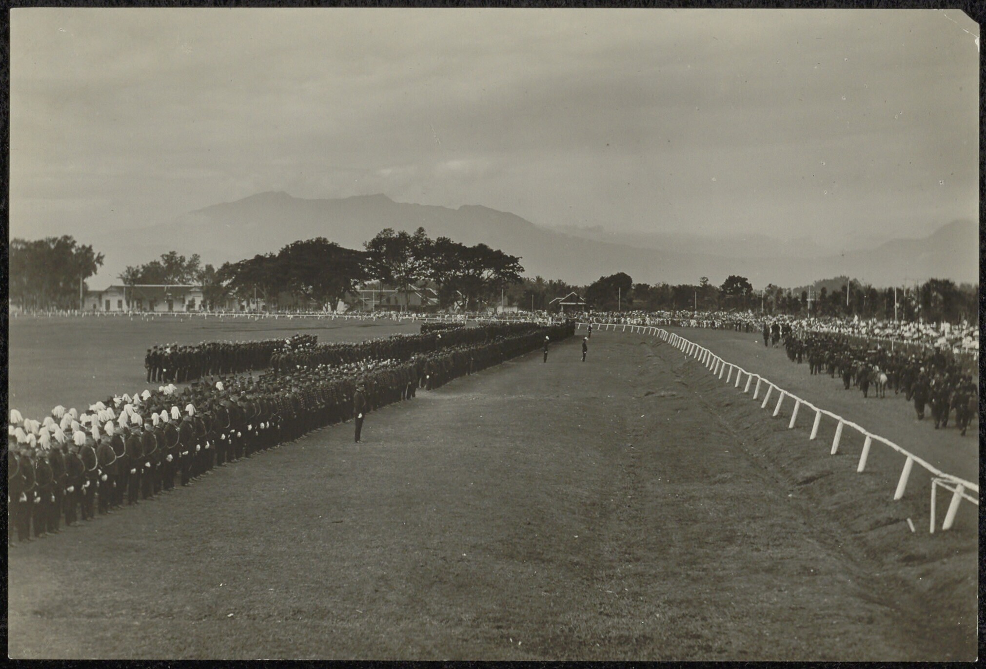 Militaire parade van het KNIL, gezien vanaf een tribune