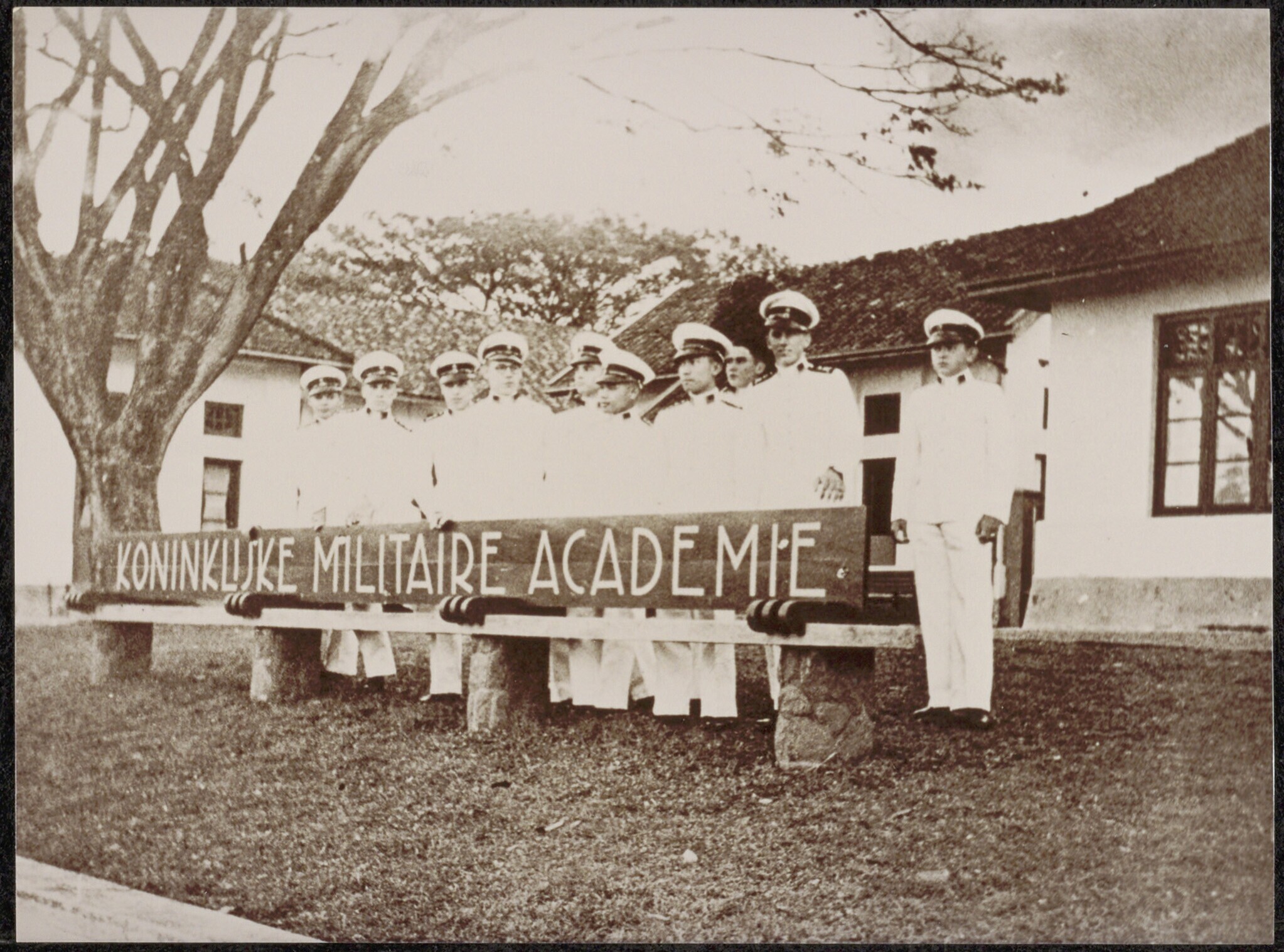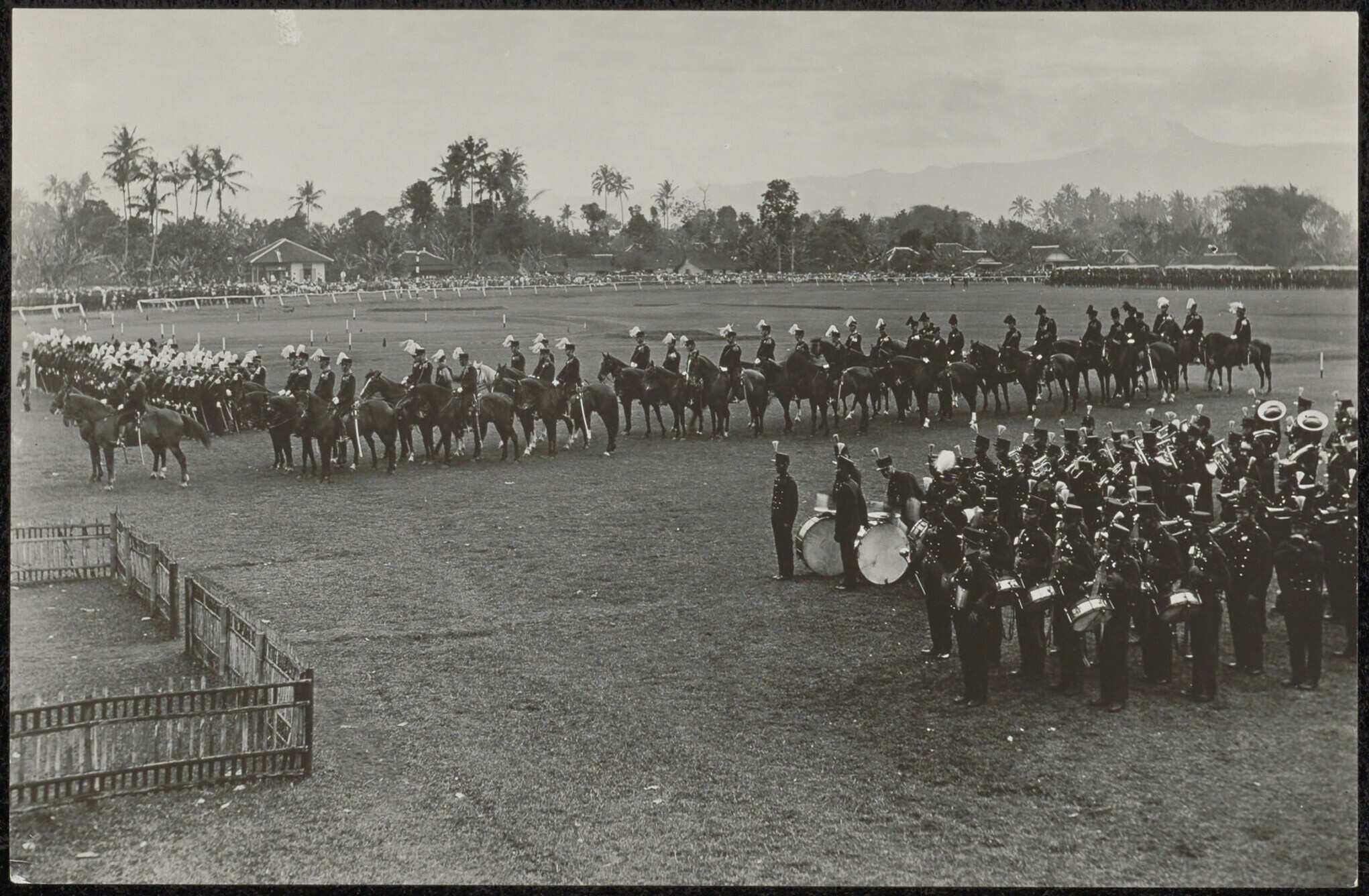Militaire parade van het KNIL met muziekkapel