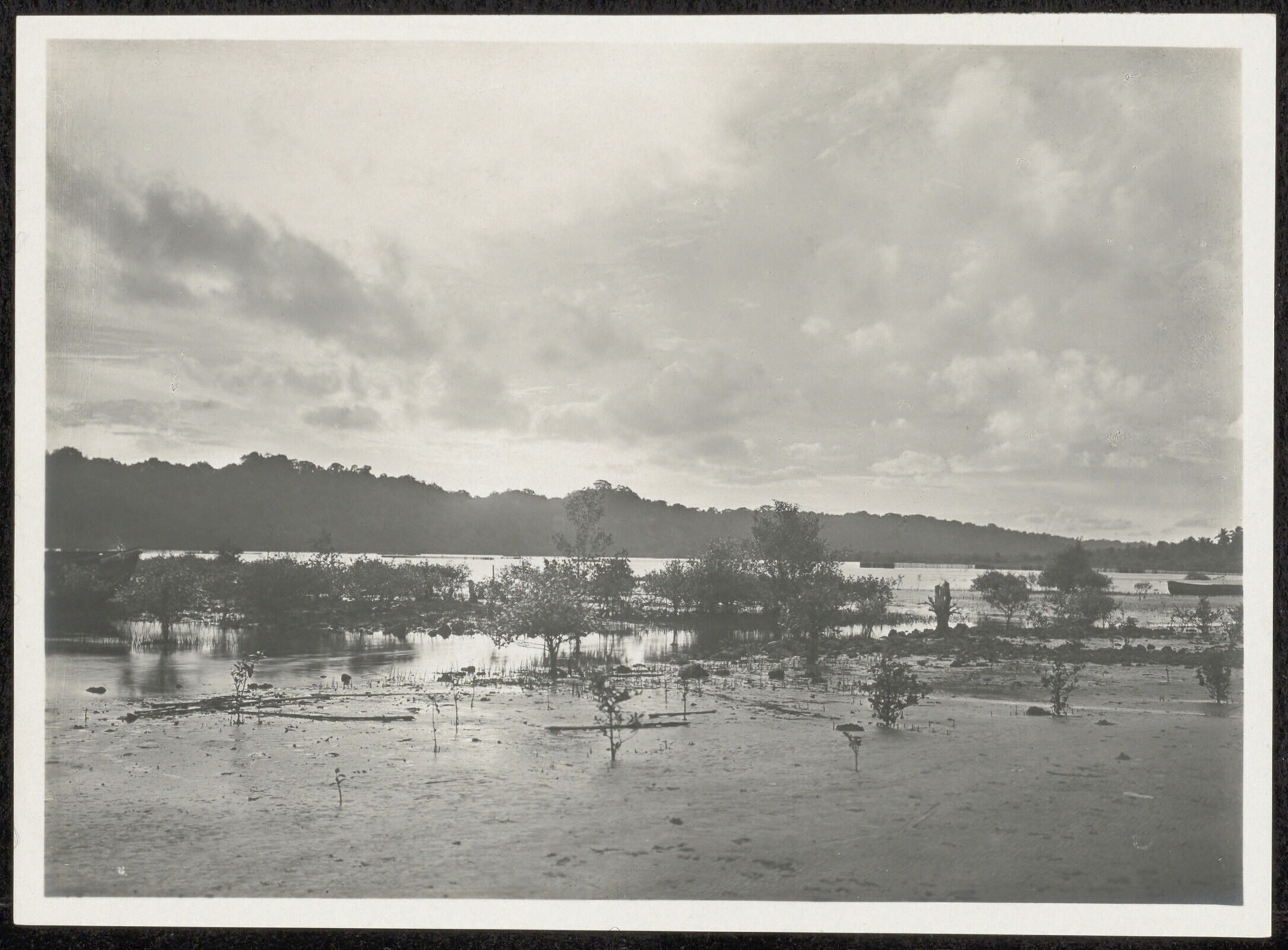 Het strand van Tjilatjap tijdens laag water