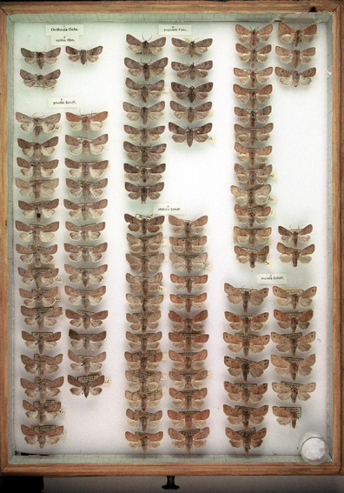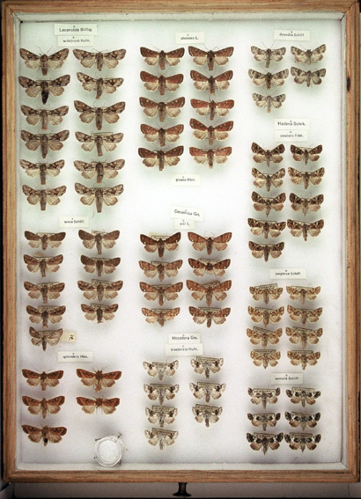 Vlinderdoos 049 van 106 van hout en glas met daarin ...