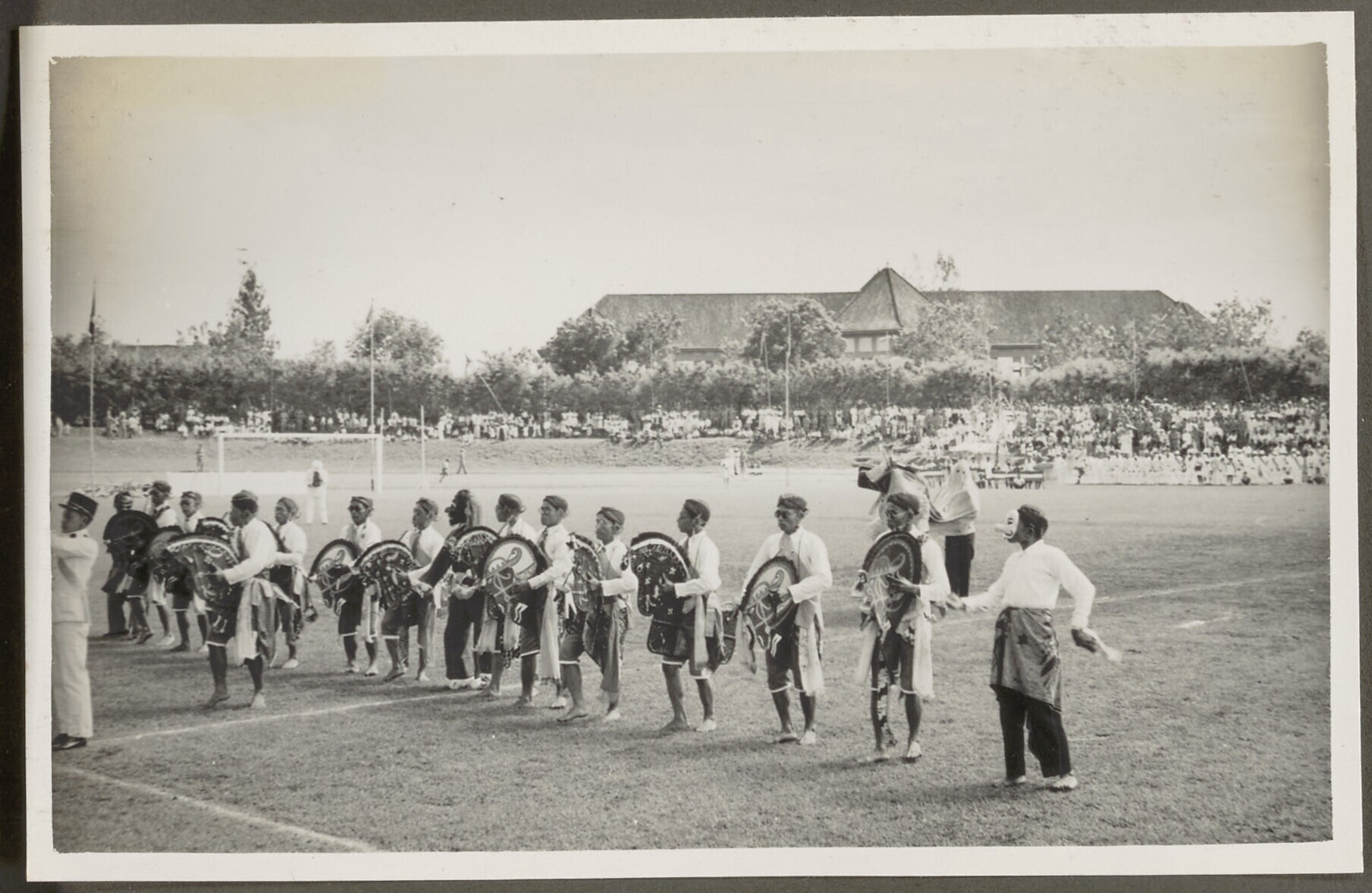 Mannen dansen Kuda Kepang op de Oranjefeesten in Malang