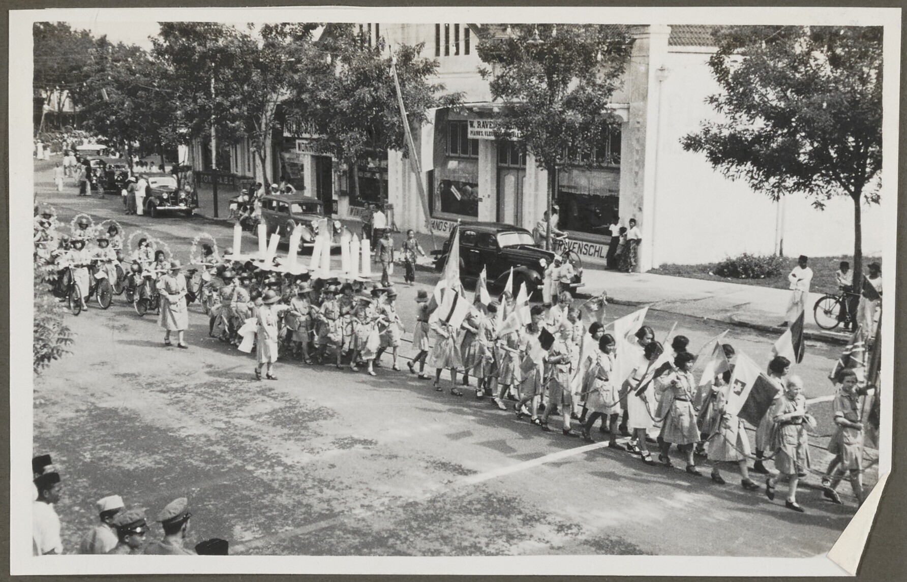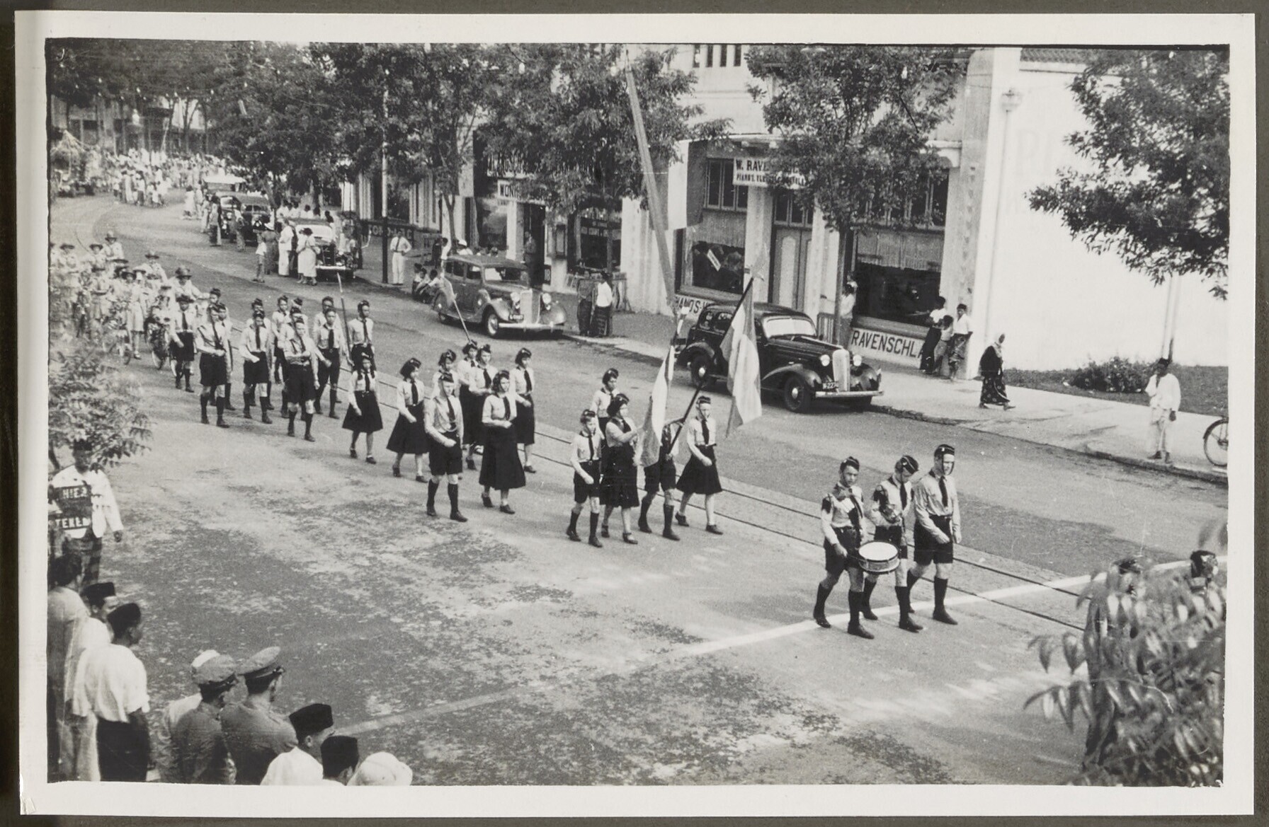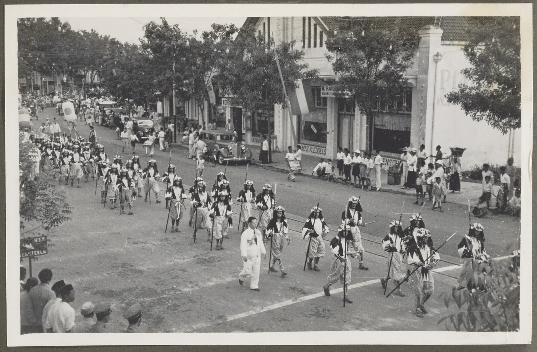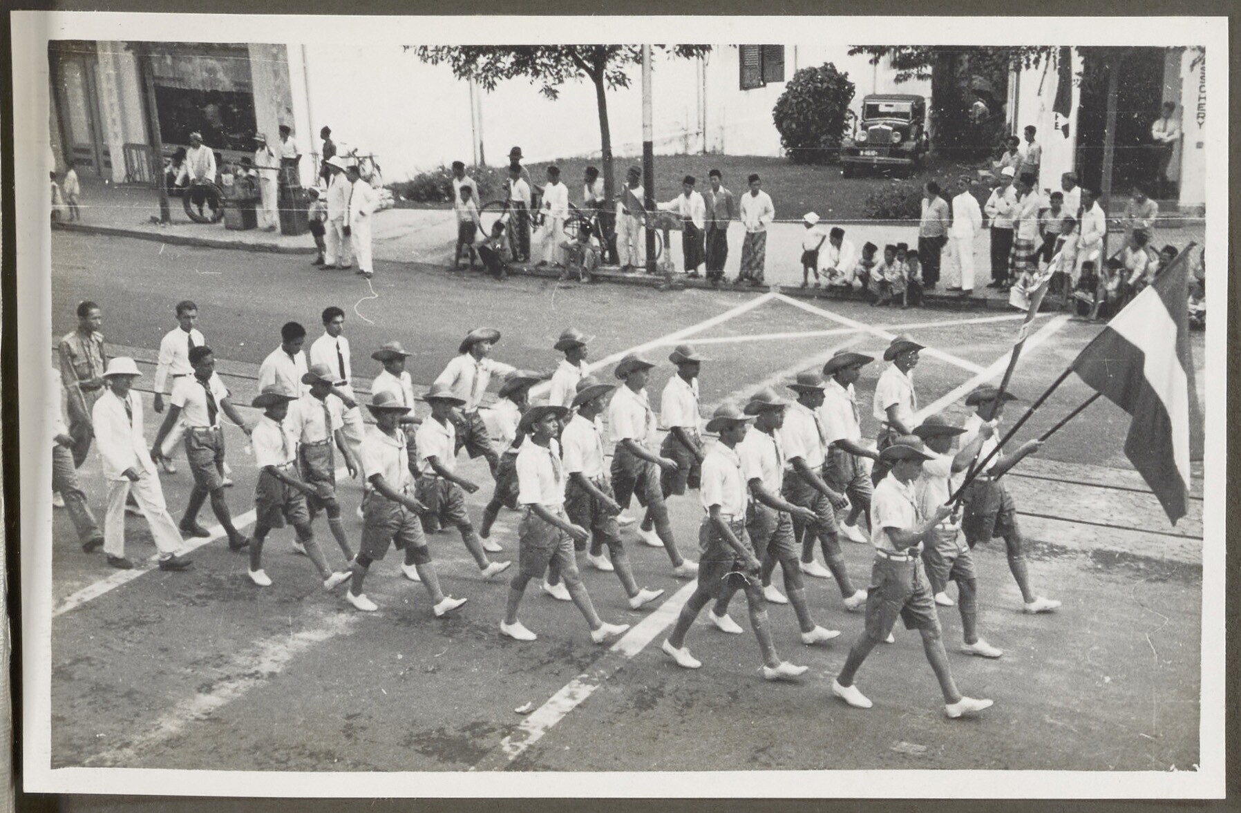 Jongens paraderen op de Oranjefeesten in Malang