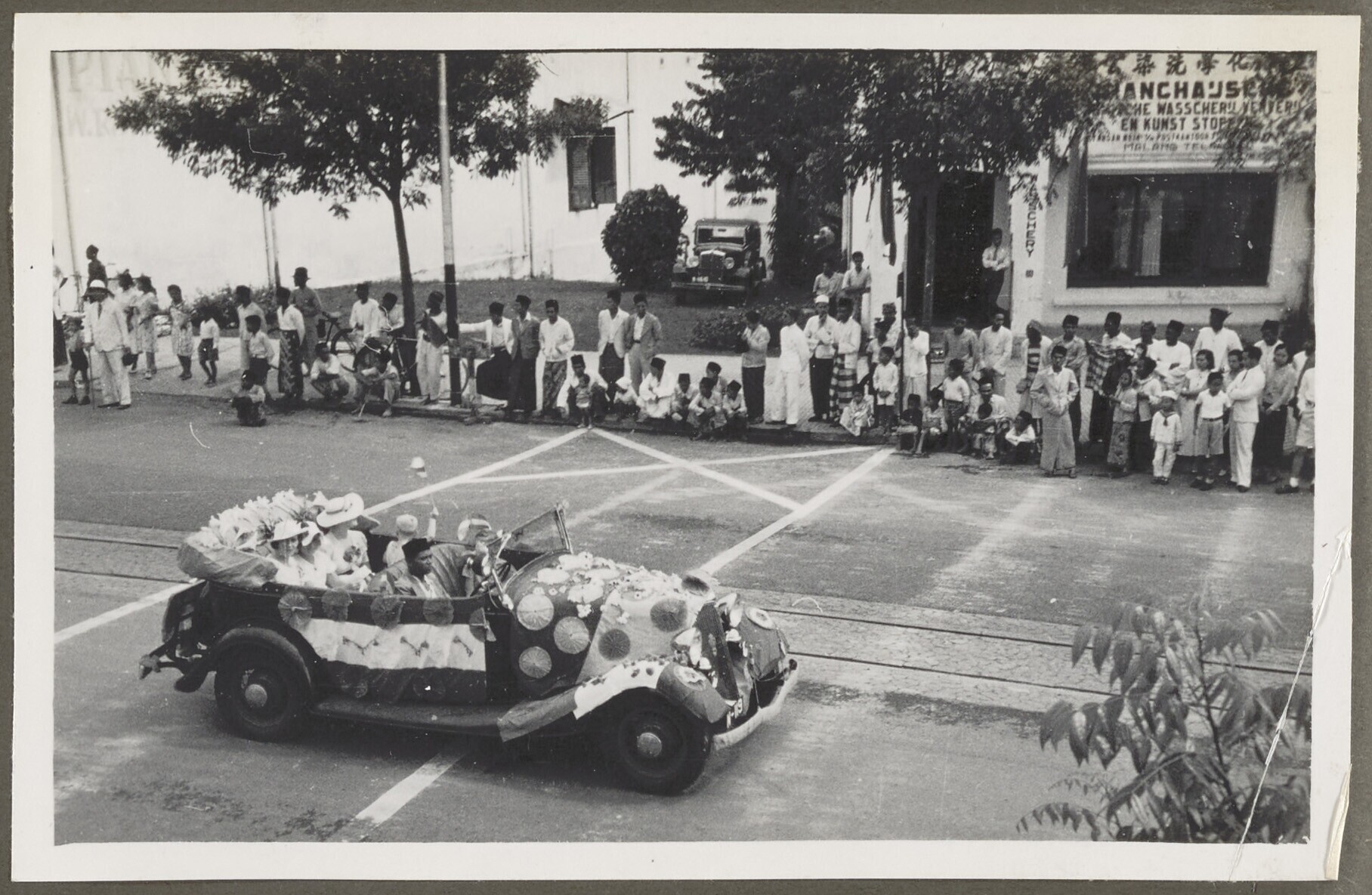 Een versierde auto op de Oranjefeesten in Malang