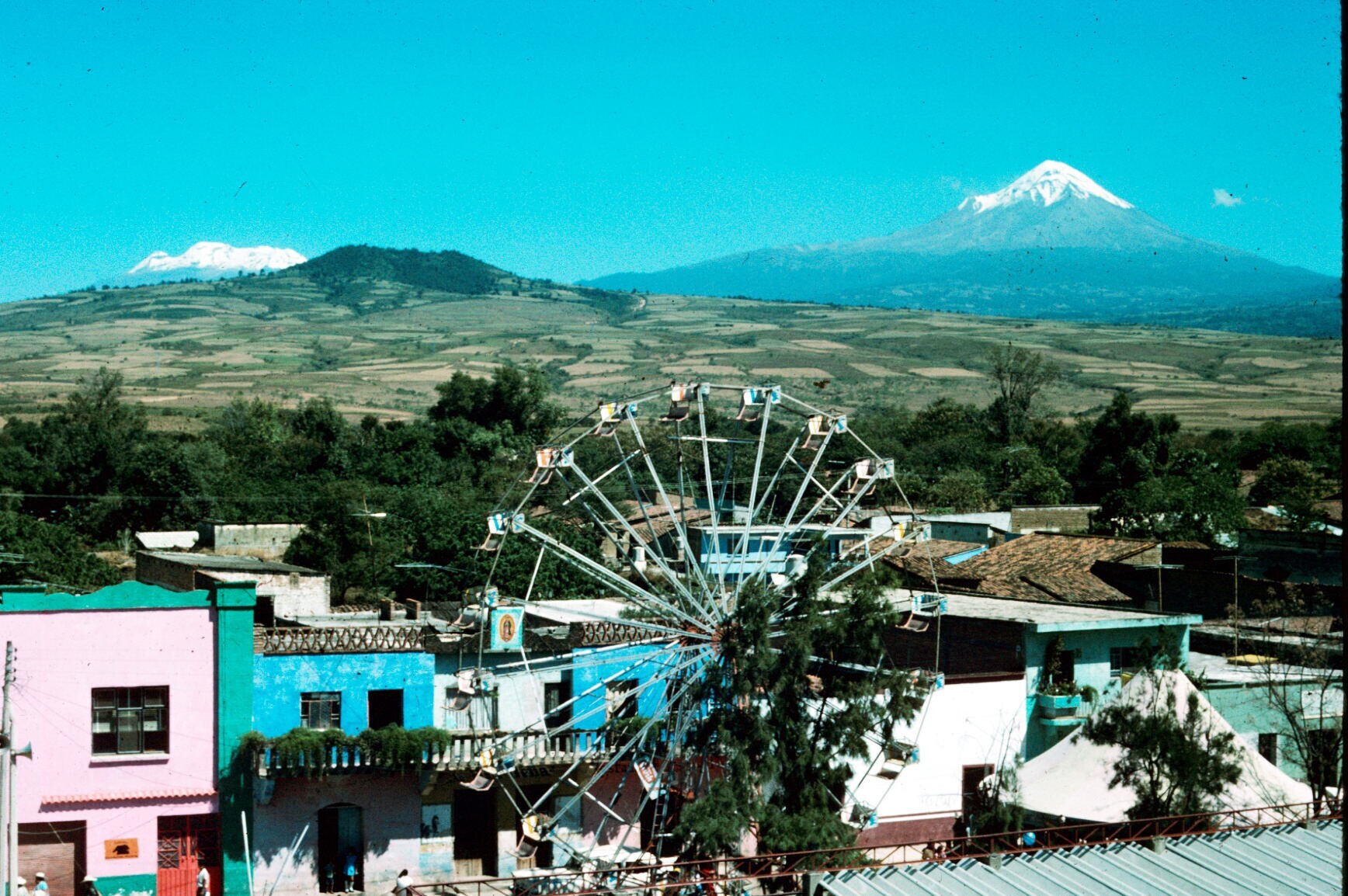 gezicht op de plaats met 'feria' (kermis); op achter...