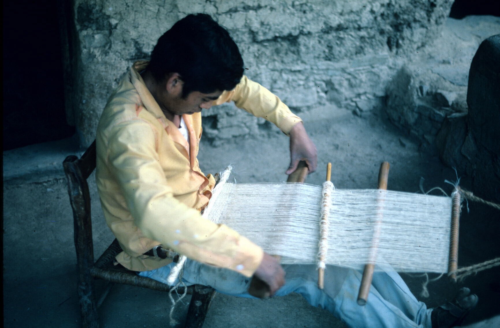 Celacio Jiménez weeft 'morral' (tas) van agavevezels...