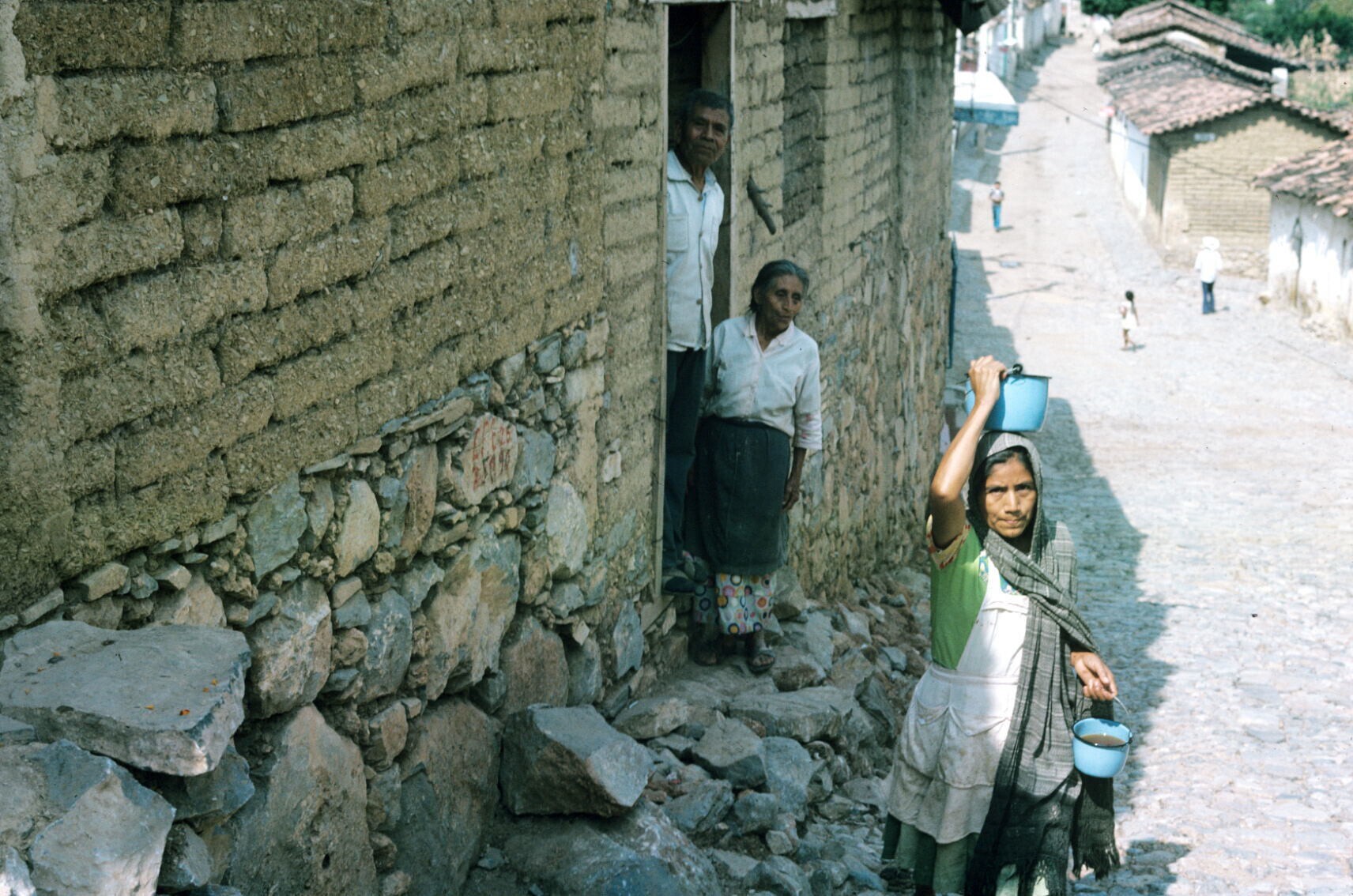 dorpsstraat, met moeder van wever Celacio Jiménez vo...