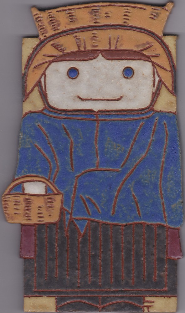 Tegel van keramiek, opglazuur, voorstellende: staand...