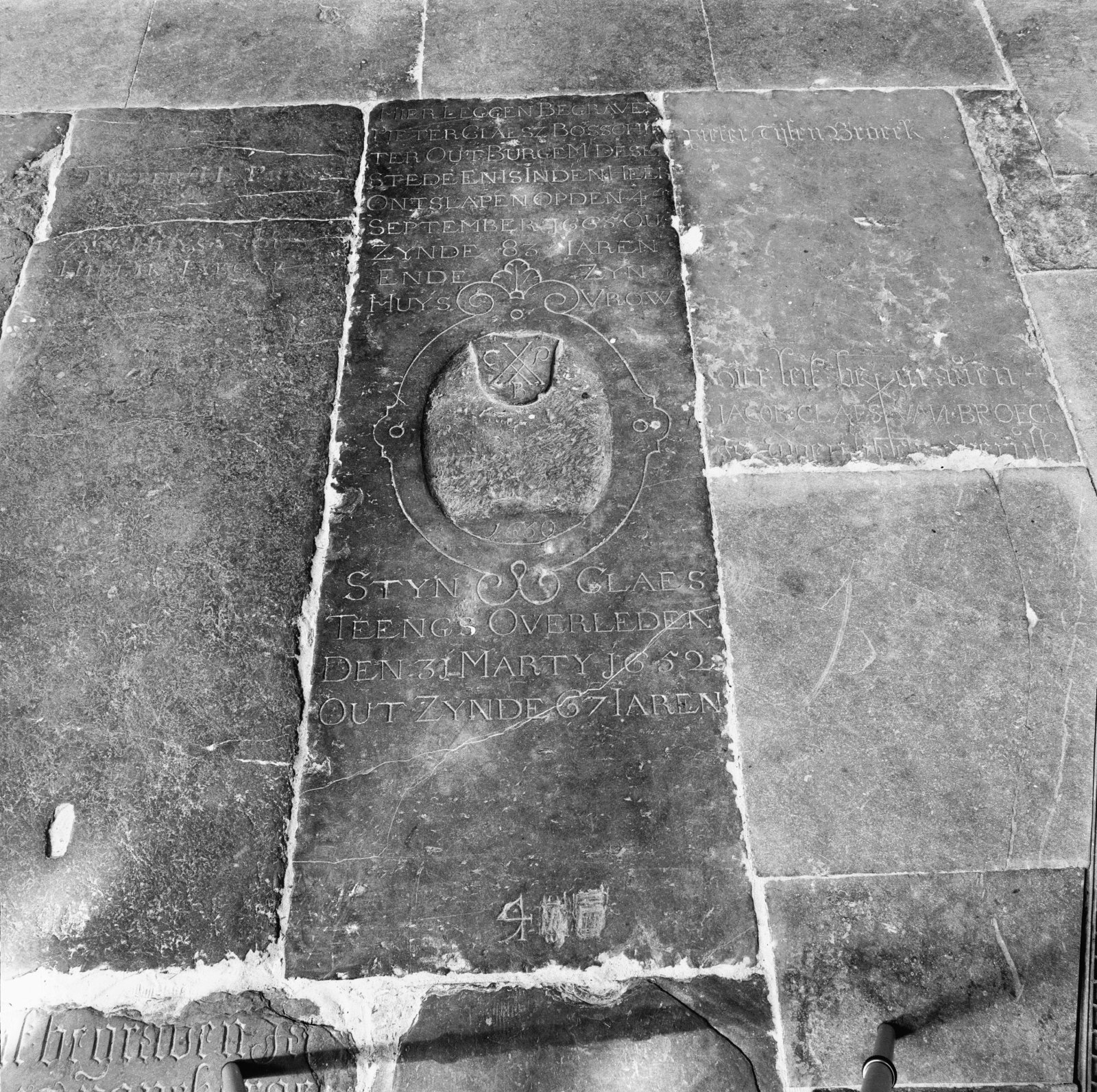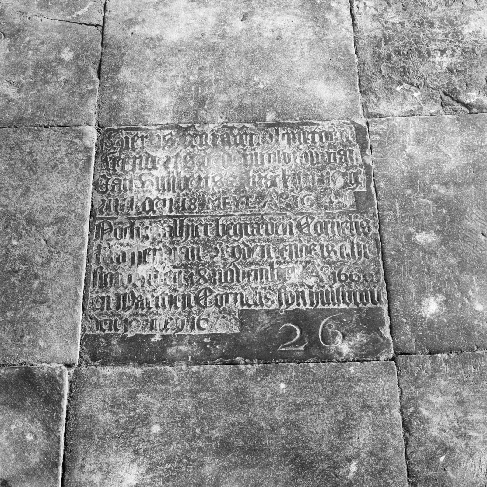 Interieur, grafzerken in de vloer van de Hervormde kerk