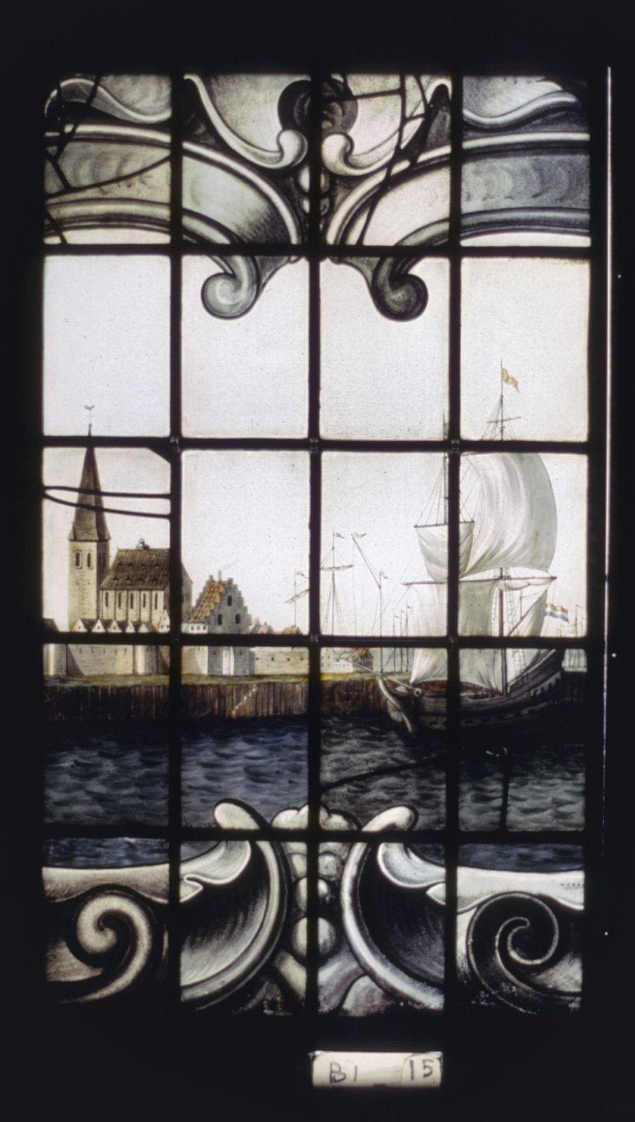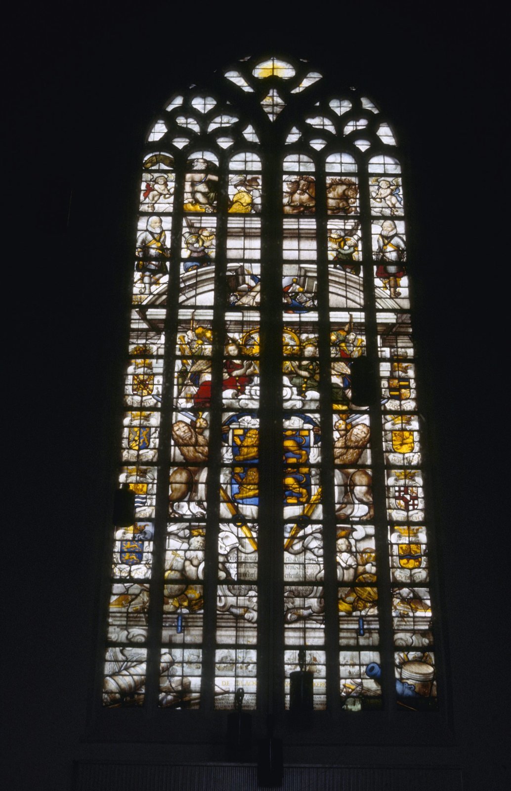 Interieur, gebrandschilderd glas, raam 15: "Wapen va...