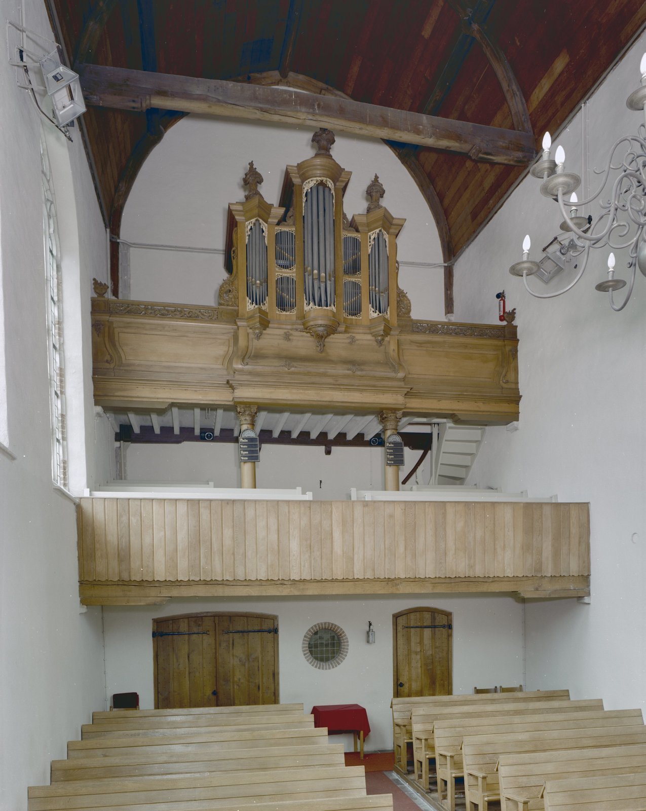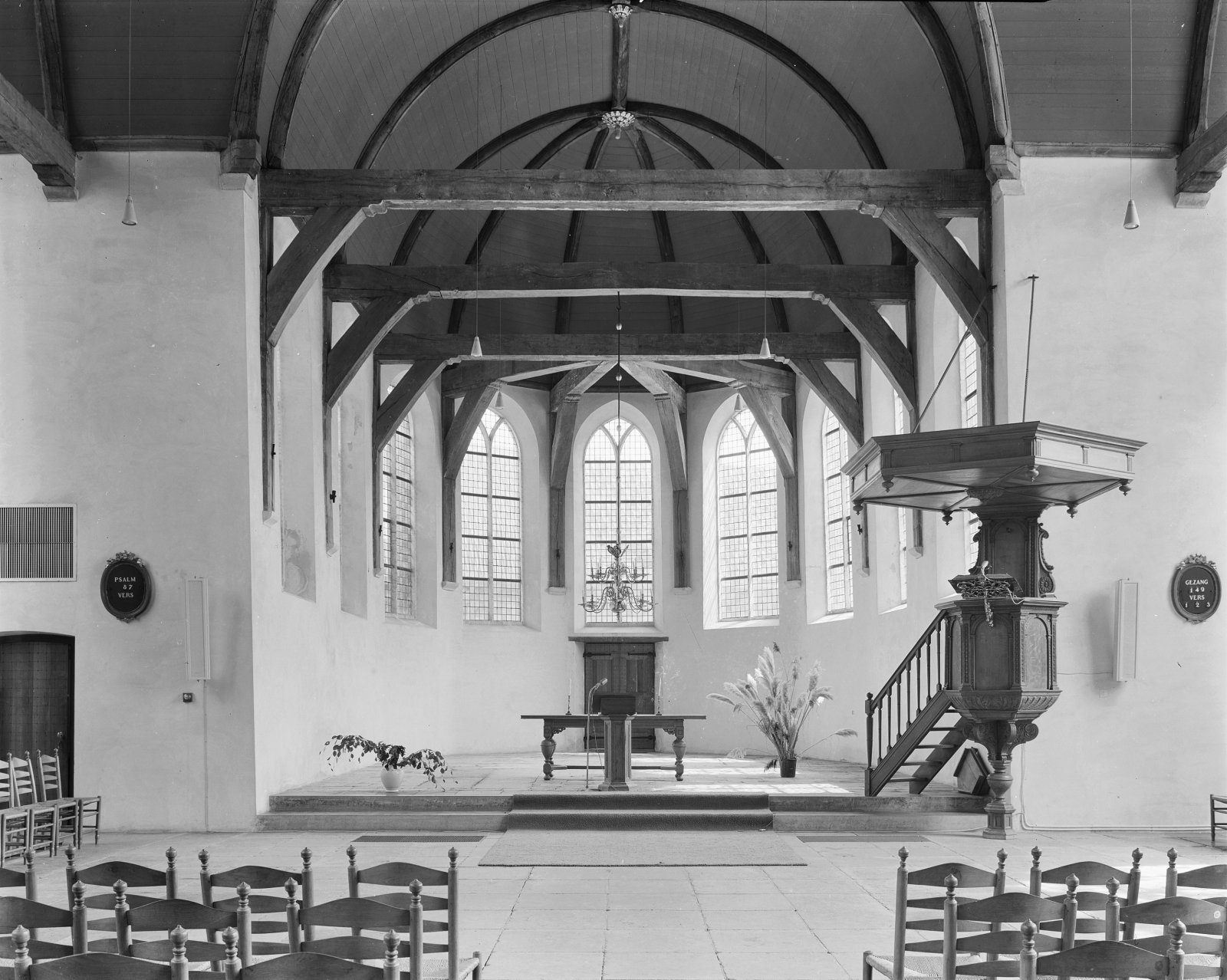 Interieur, Hervormde kerk in de steigers tijdens res...