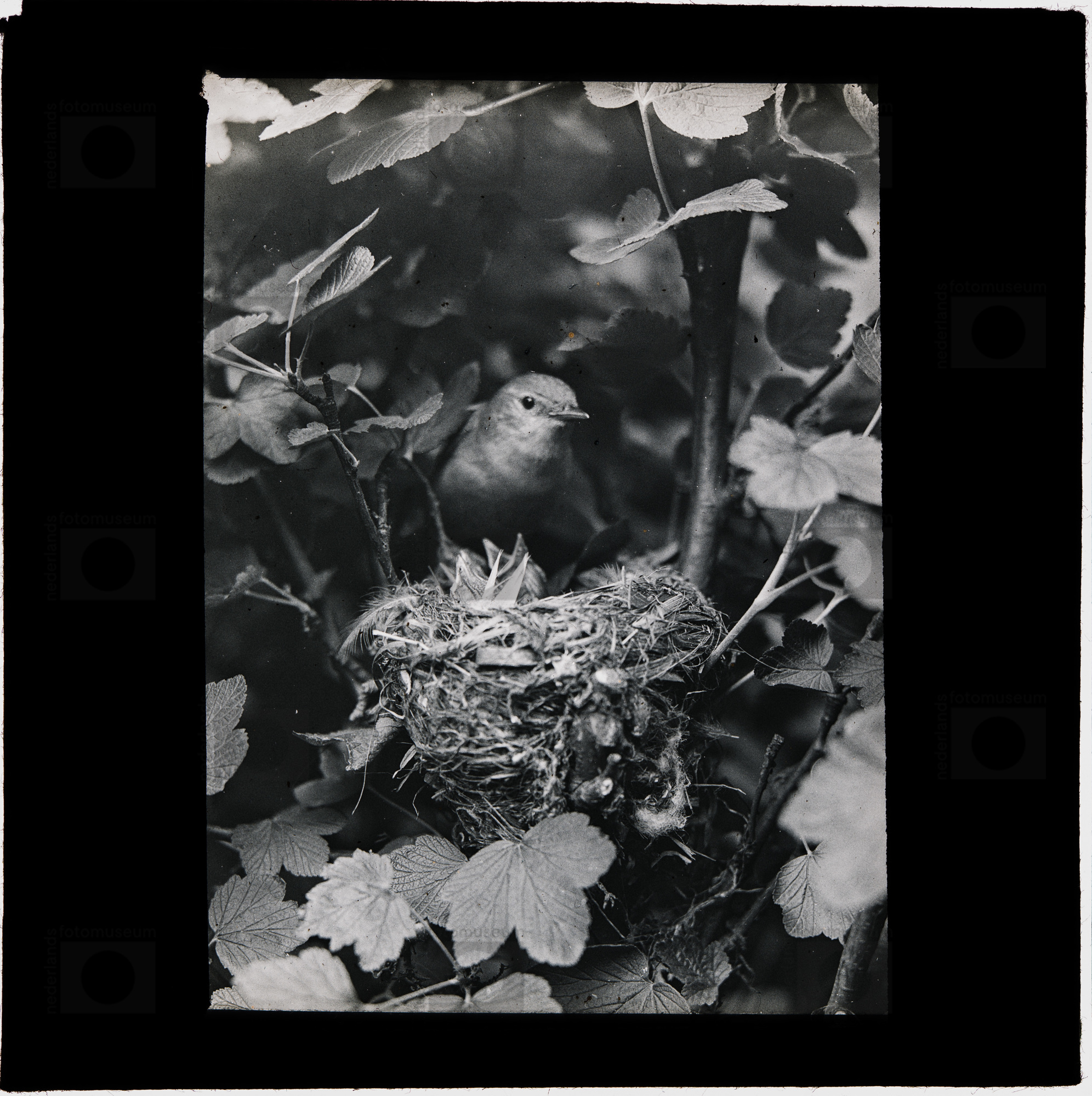 Spotvogel bij nest met jongen (1925-1938)