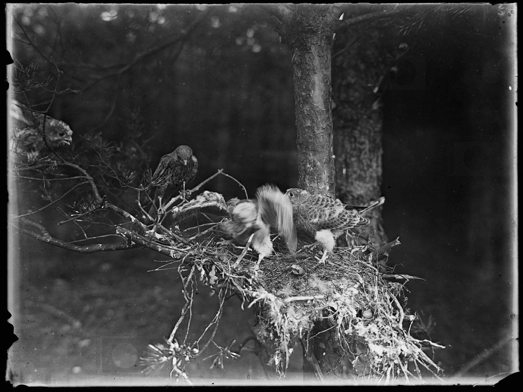 Sperwer op nest met met jongen, De Steeg (1913) (rep...