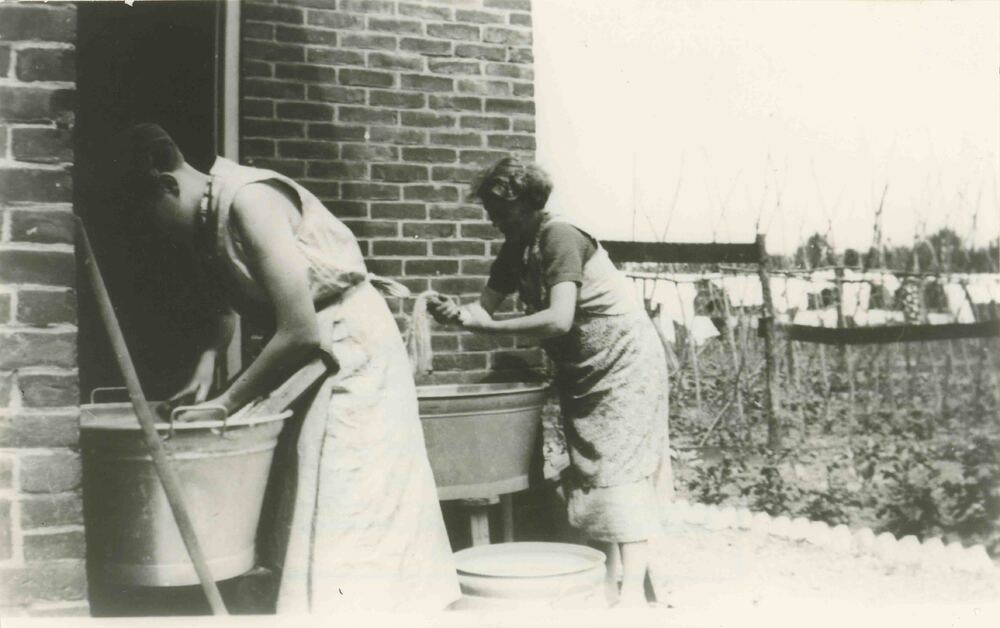 Foto, voorstellende wasdag, Geldermalsen, 1939