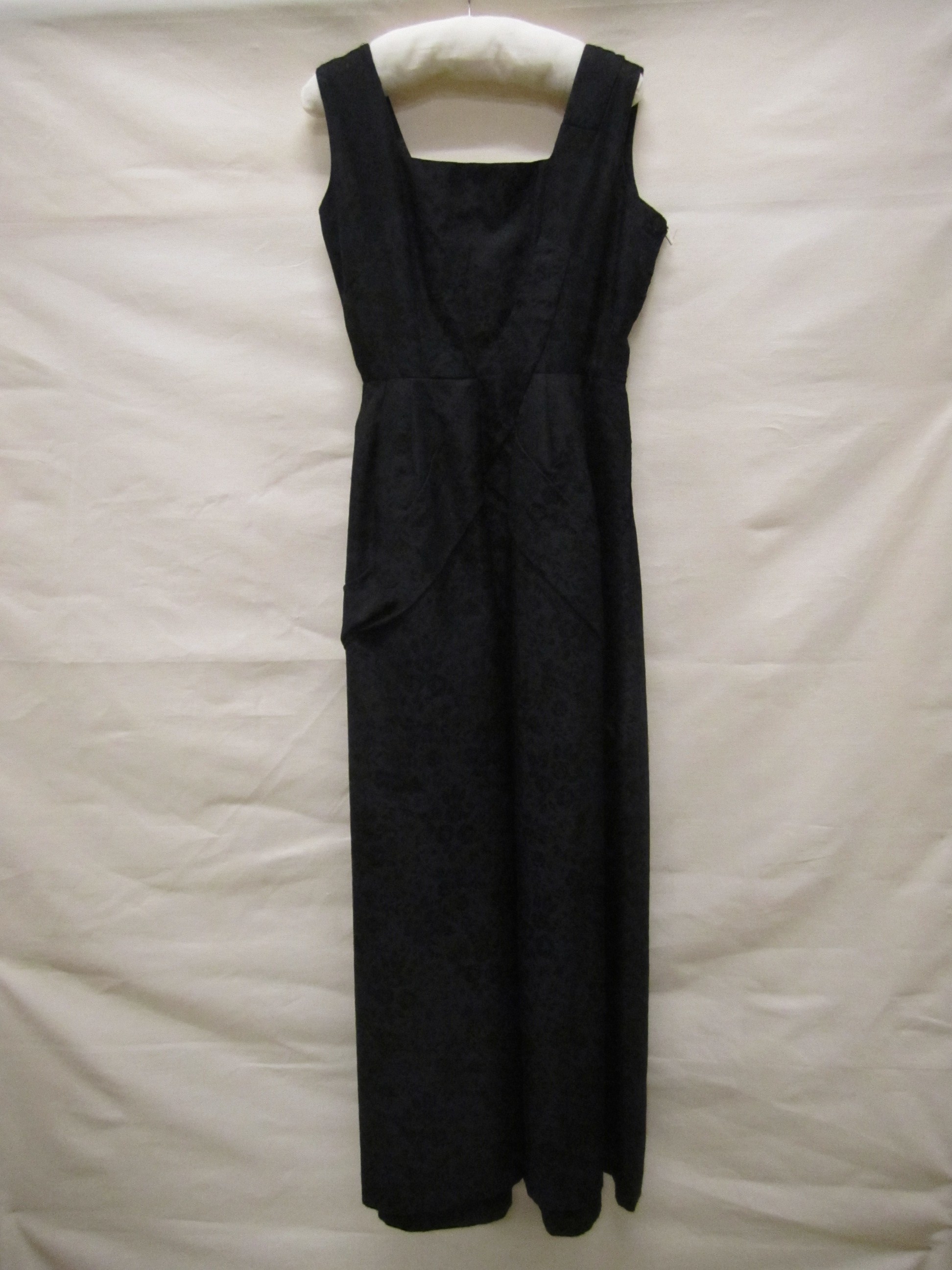 Avondjurk van zwarte kunstzijde met ingeweven damast...