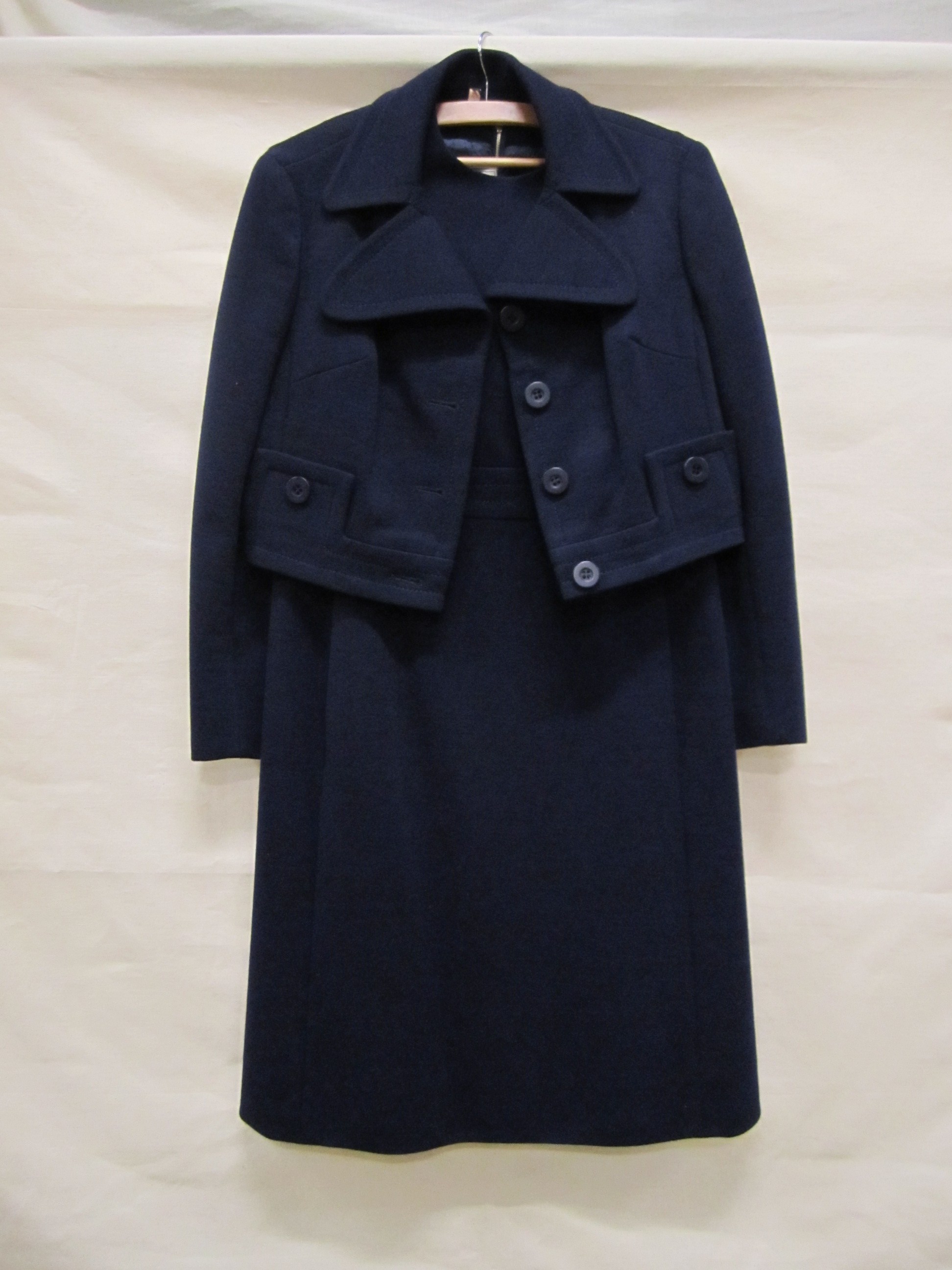 Ensemble van donkerblauw wollen tricot bestaande uit...