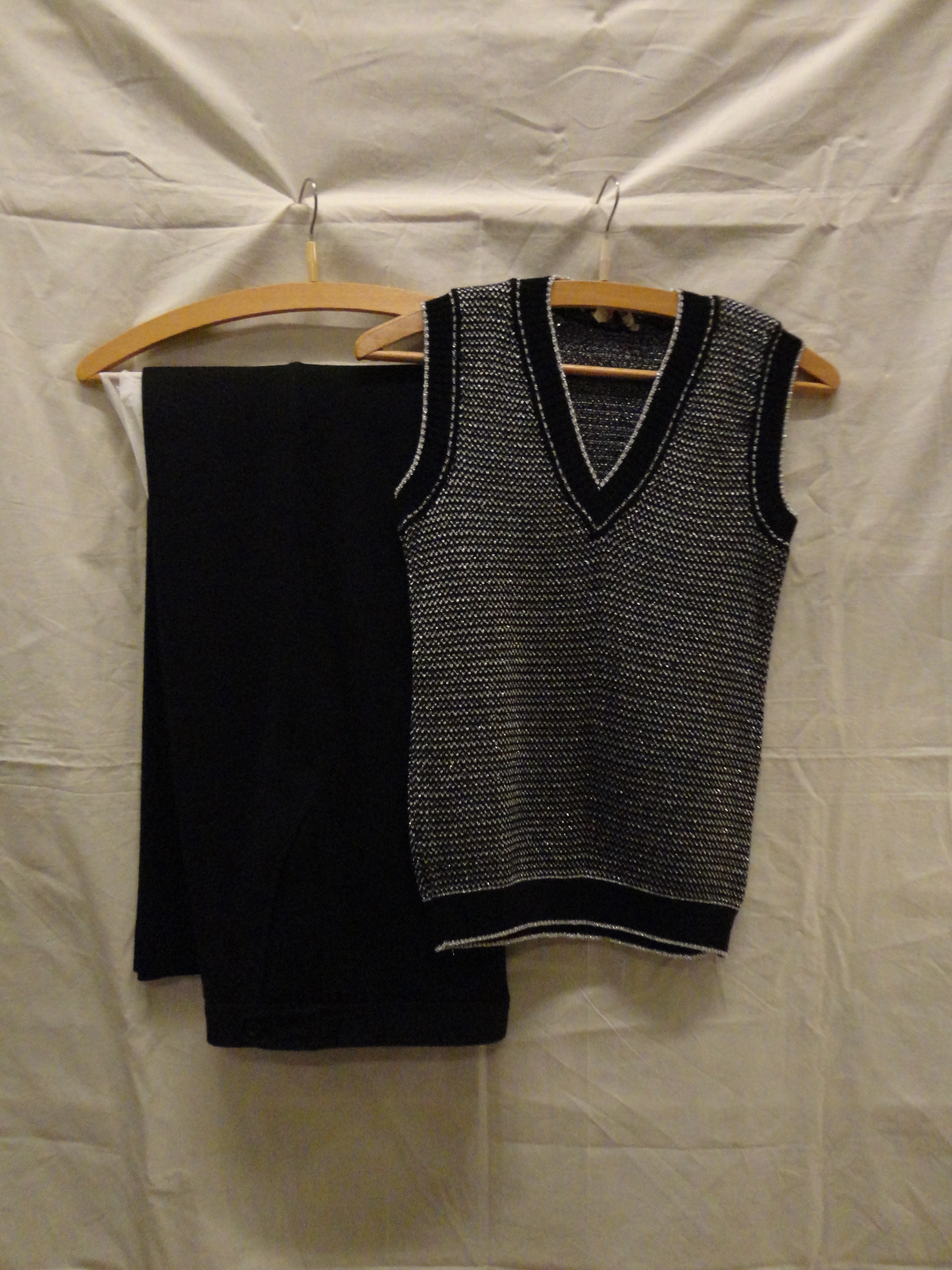 Broekpak van zwart wollen tricot, bestaande uit een ...