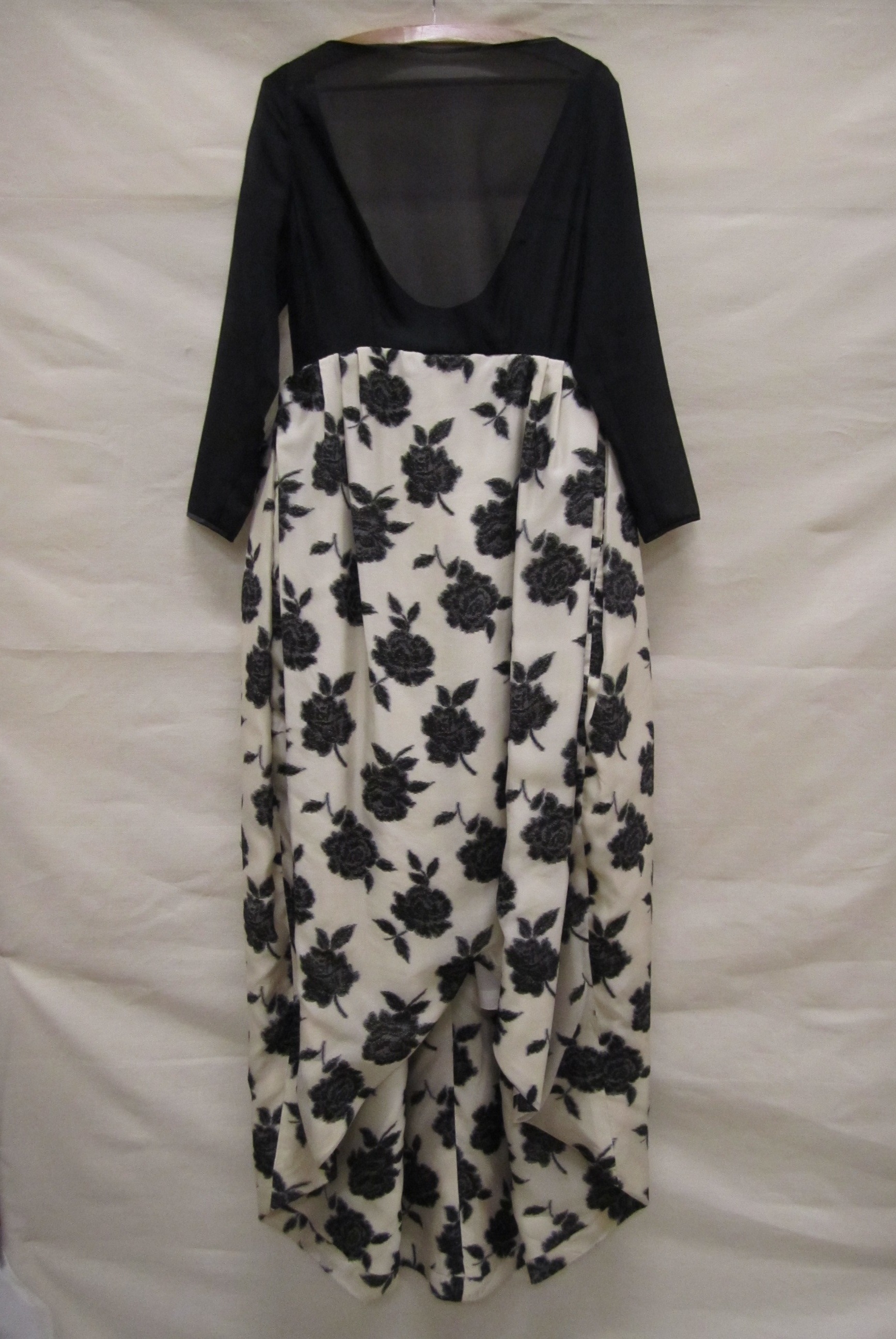 Avondjurk van zwart en crèmekleurig synthetisch weef...