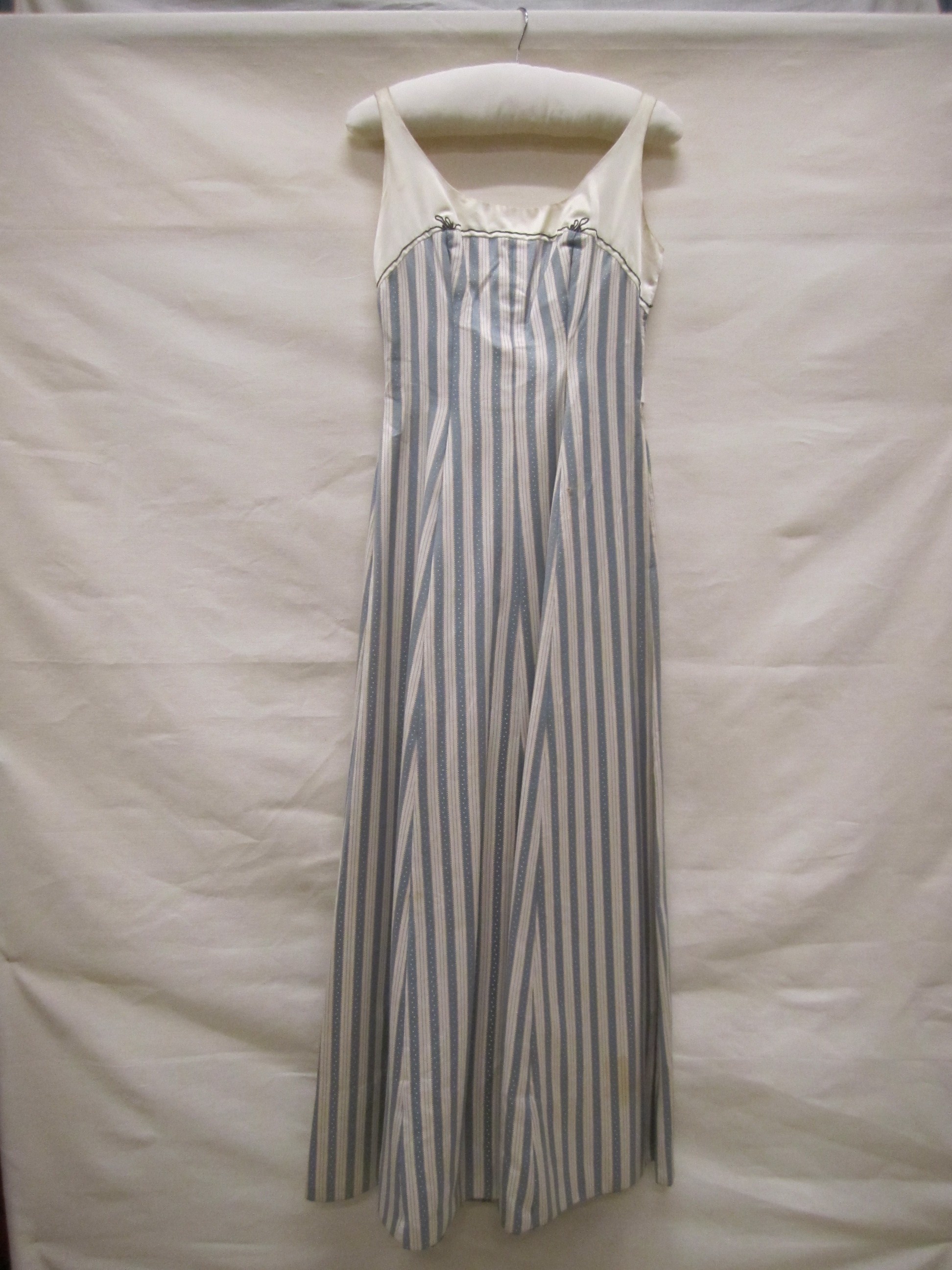 Avondjurk van satijn met ingeweven verticale strepen...