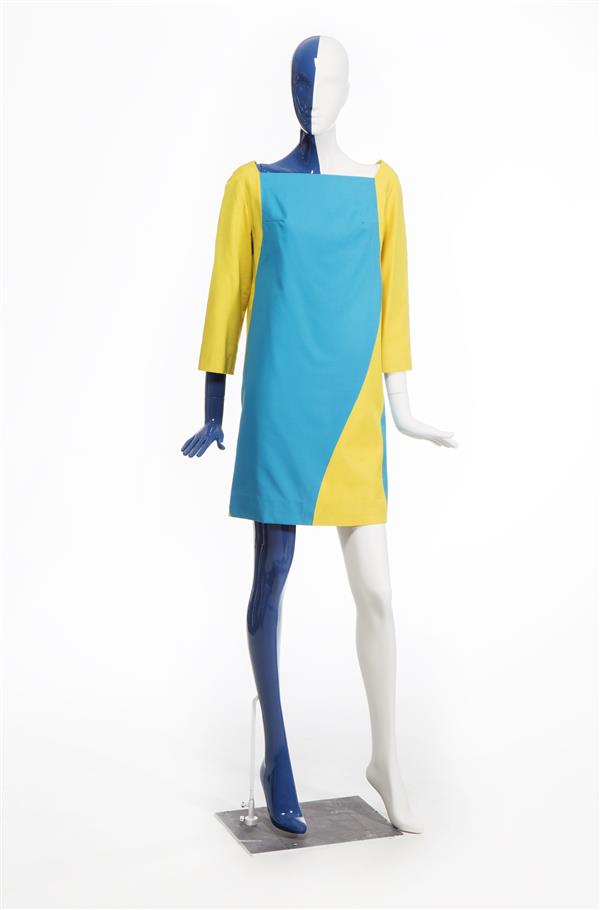 Jurk, zogenaamd shiftmodel, van gele Terlenka (synth...
