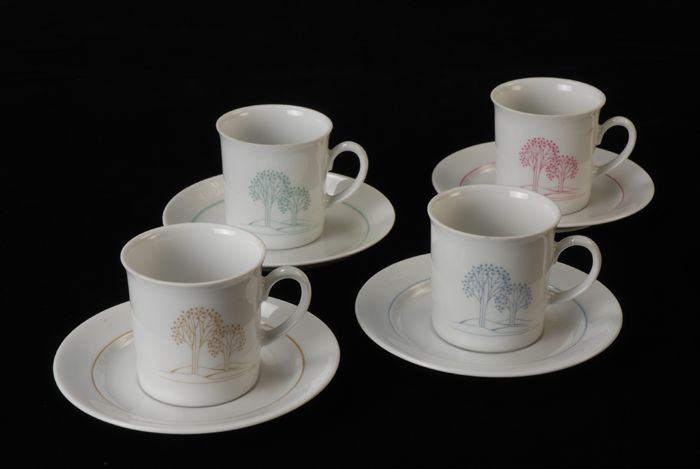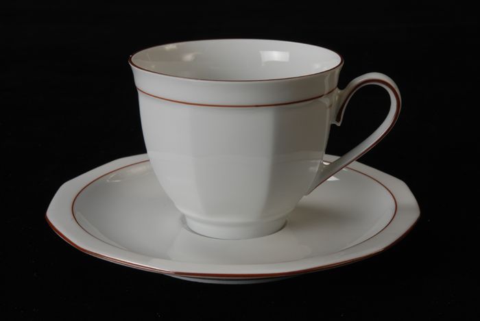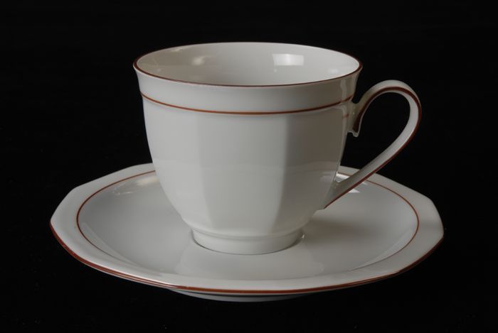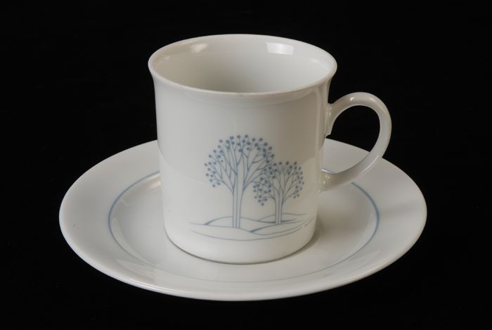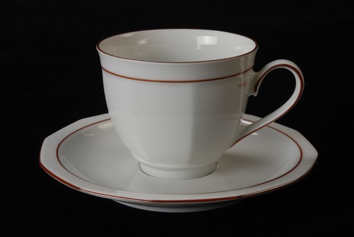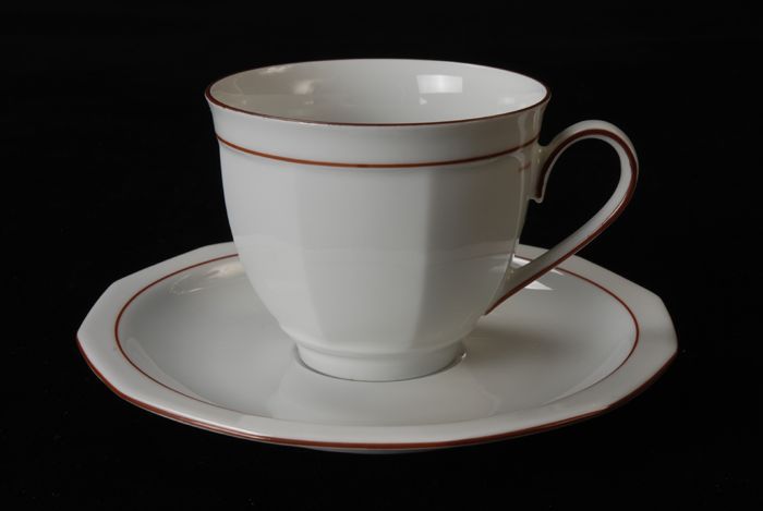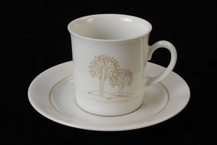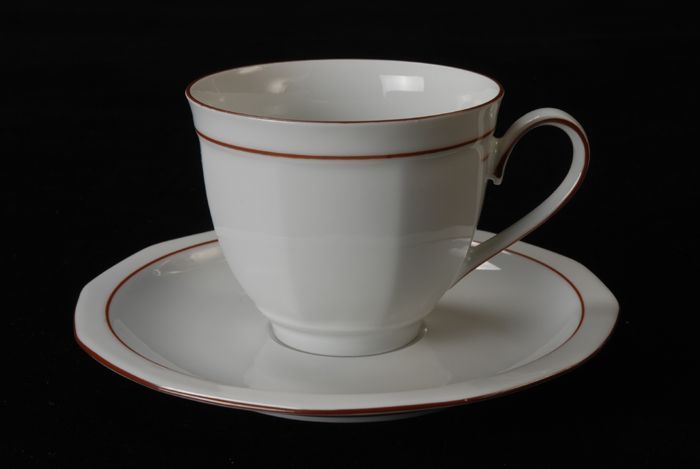 Kop en schotel van Van Nelle, "Linea", wit porselein...