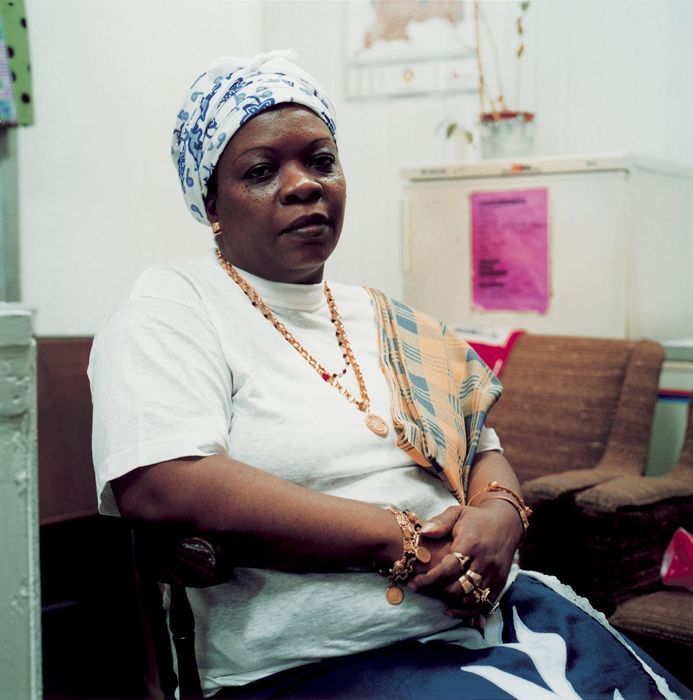 Kleurenfoto van de religieuze leider van de Winti, p...